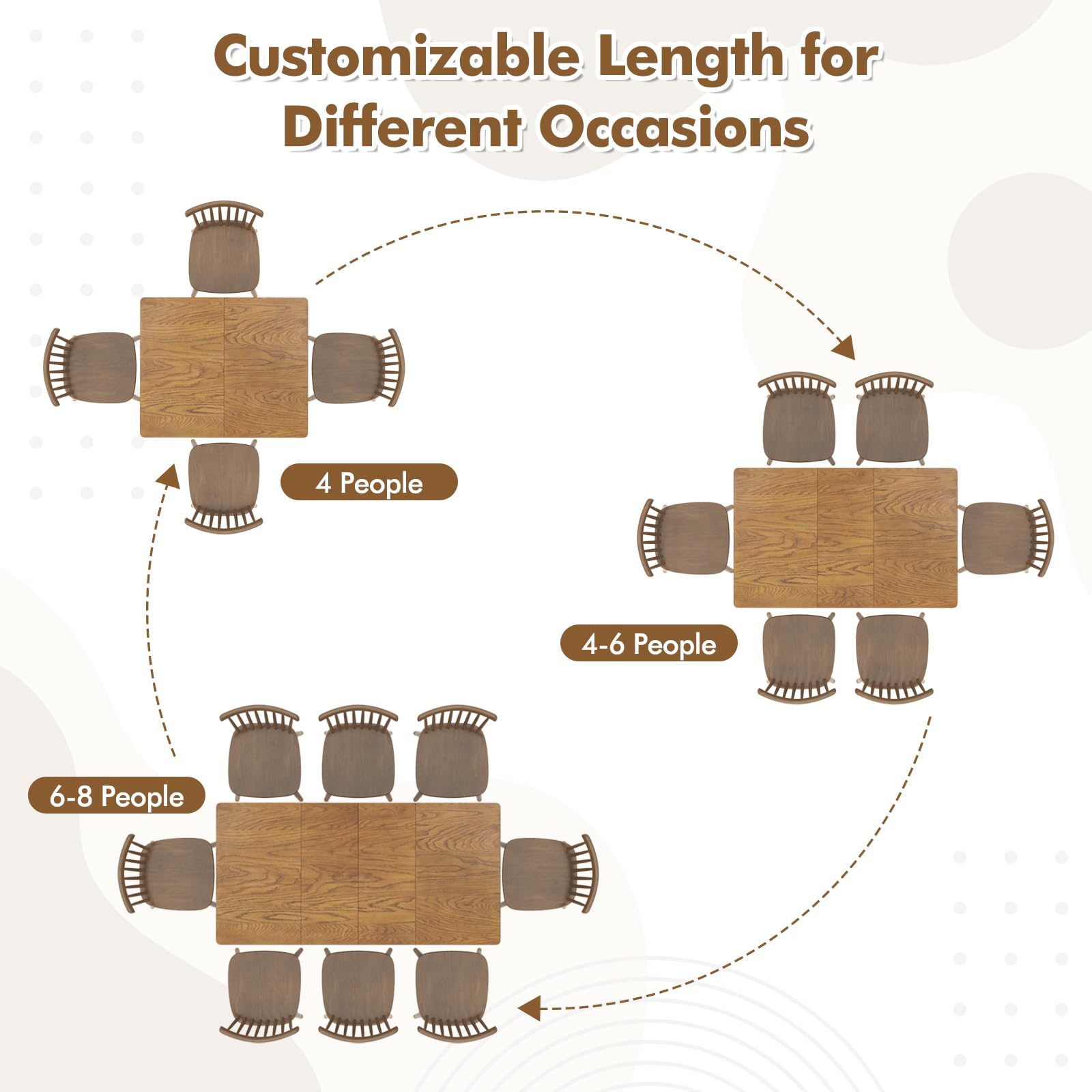 Family dinners, gatherings with friends, small spaces when contracted, and large gatherings when expanded. It is suitable for kitchen – dining areas and formal dining rooms.