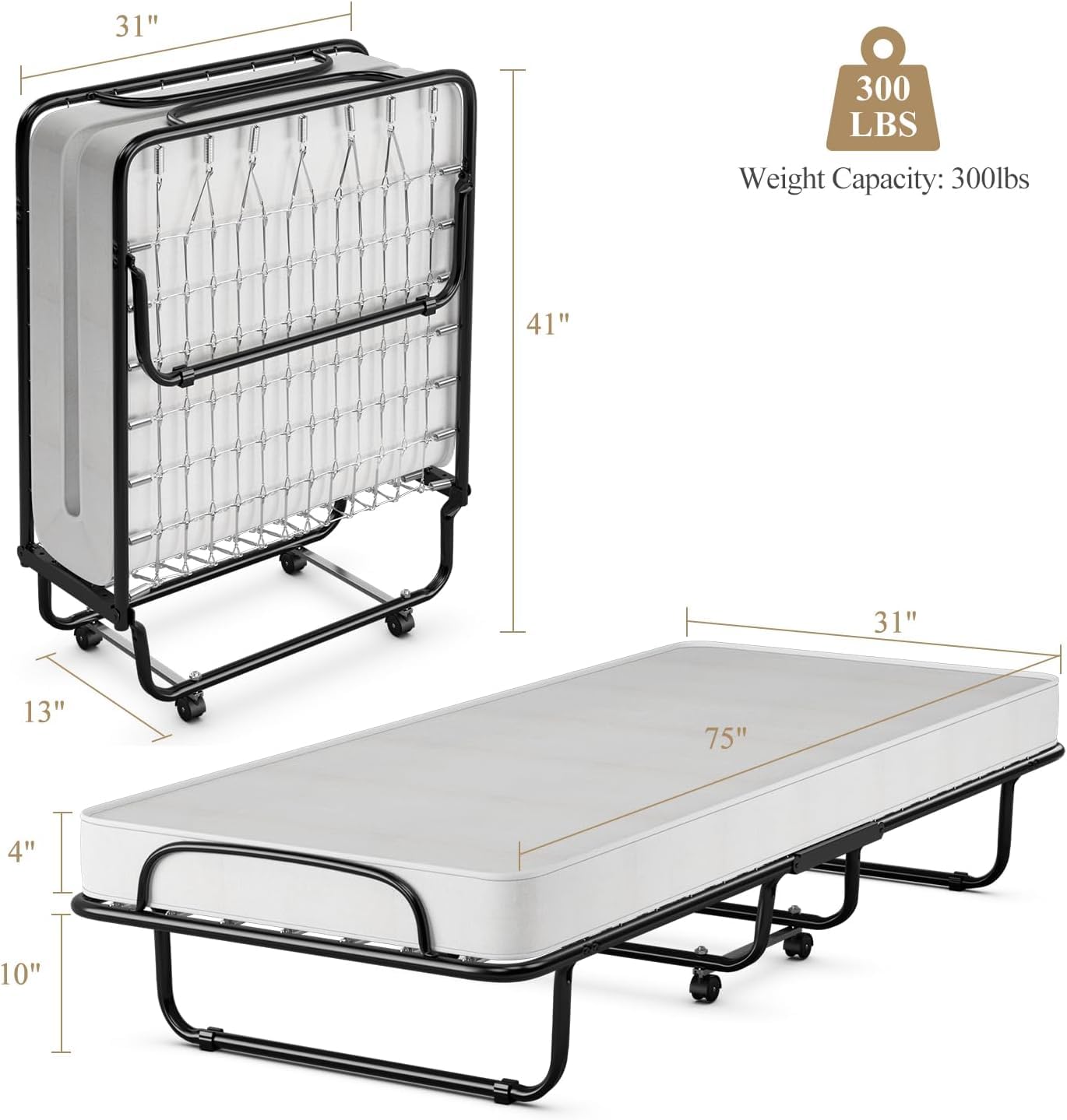| Unfolded Dimensions | Length = 75”, Width = 31”, Height = 10” (frame height) |