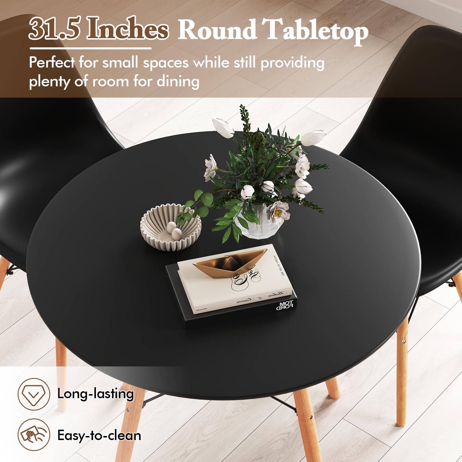 - Wipe the MDF tabletop and PP chairs with a damp cloth for regular cleaning.