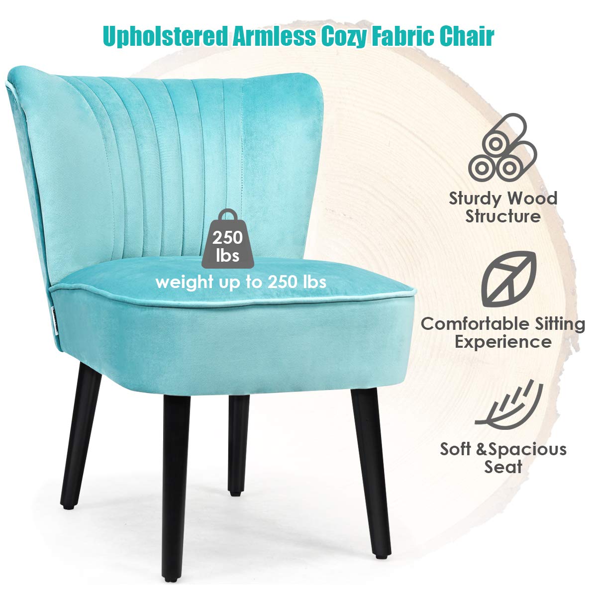 This armless accent chair is a perfect blend of style and functionality. It features a plush fabric upholstery and a sturdy wooden frame, making it suitable for various indoor spaces. It is likely sold as a pair, offering great value for your money.
