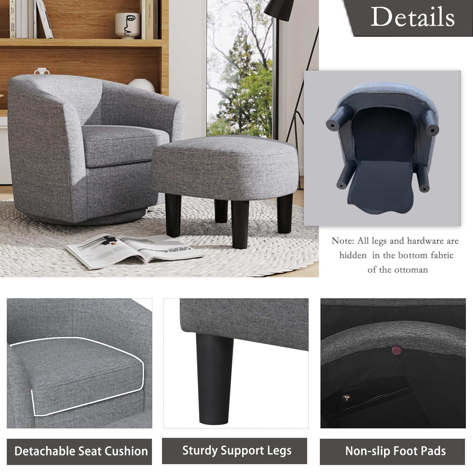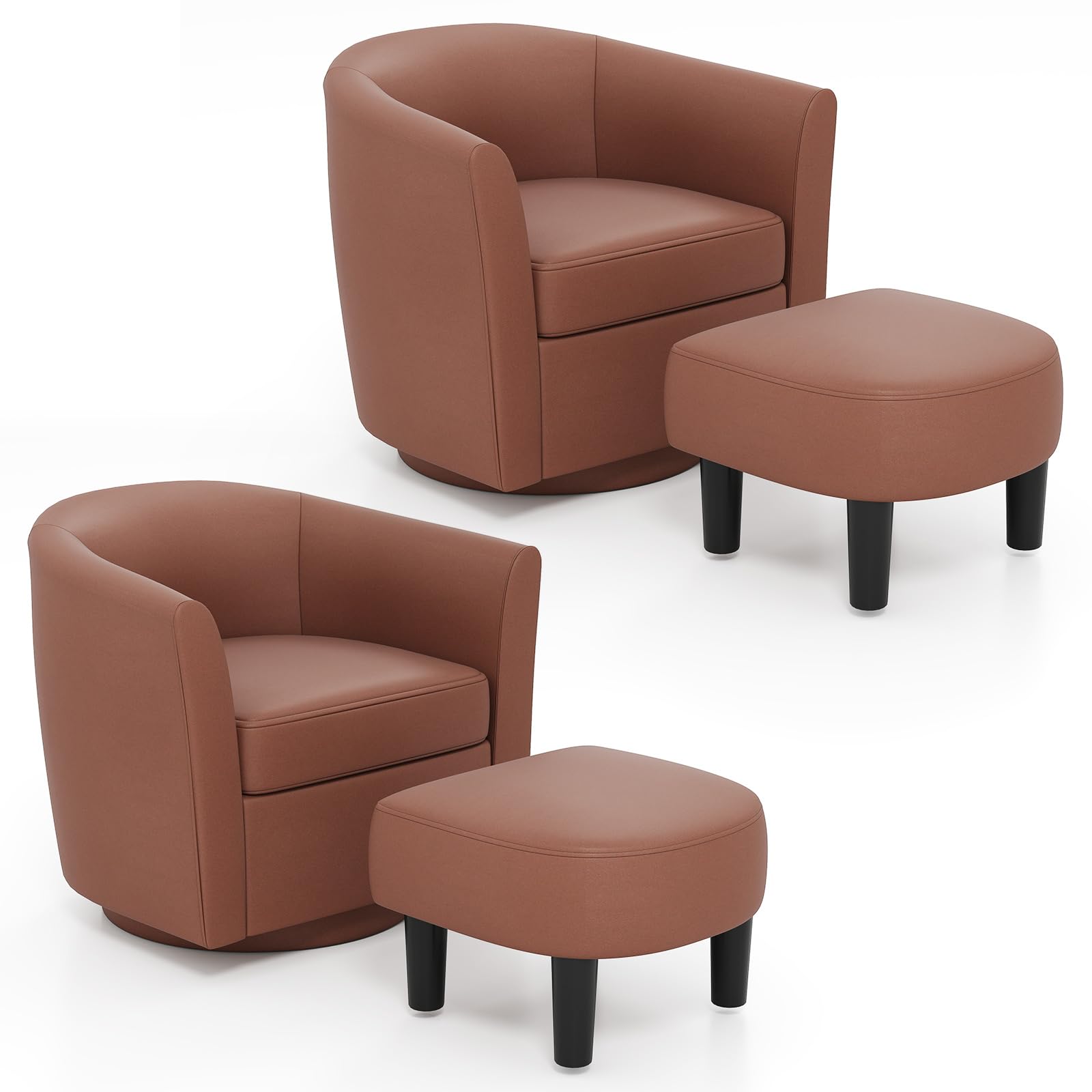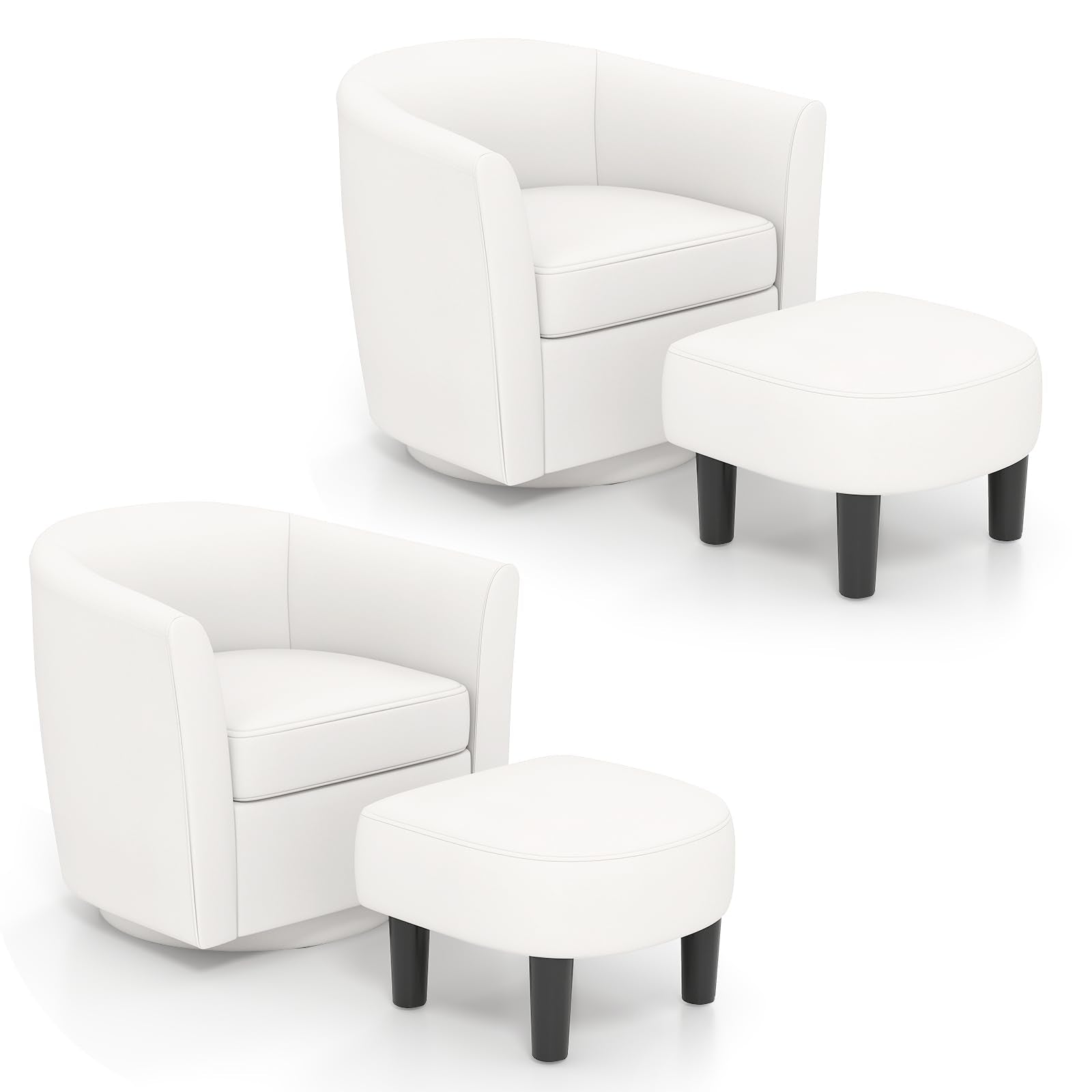 This is a stylish and comfortable set that includes two barrel chairs and two ottomans. It offers a modern and contemporary design, perfect for various living spaces.
