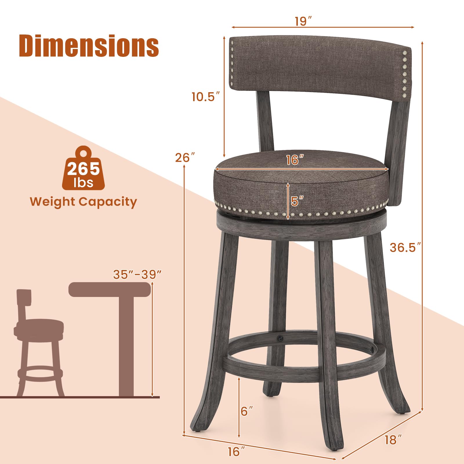 Residential kitchens, home bars, or casual dining areas. Ideal for socializing, working, or dining at counter – height tables.
