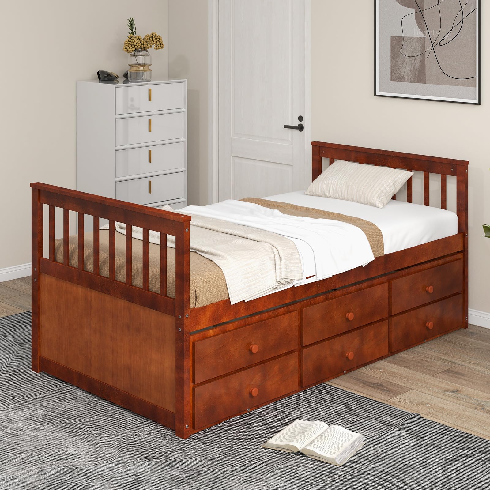 - 6 drawers under the trundle for organizing clothing, toys, or linens.
