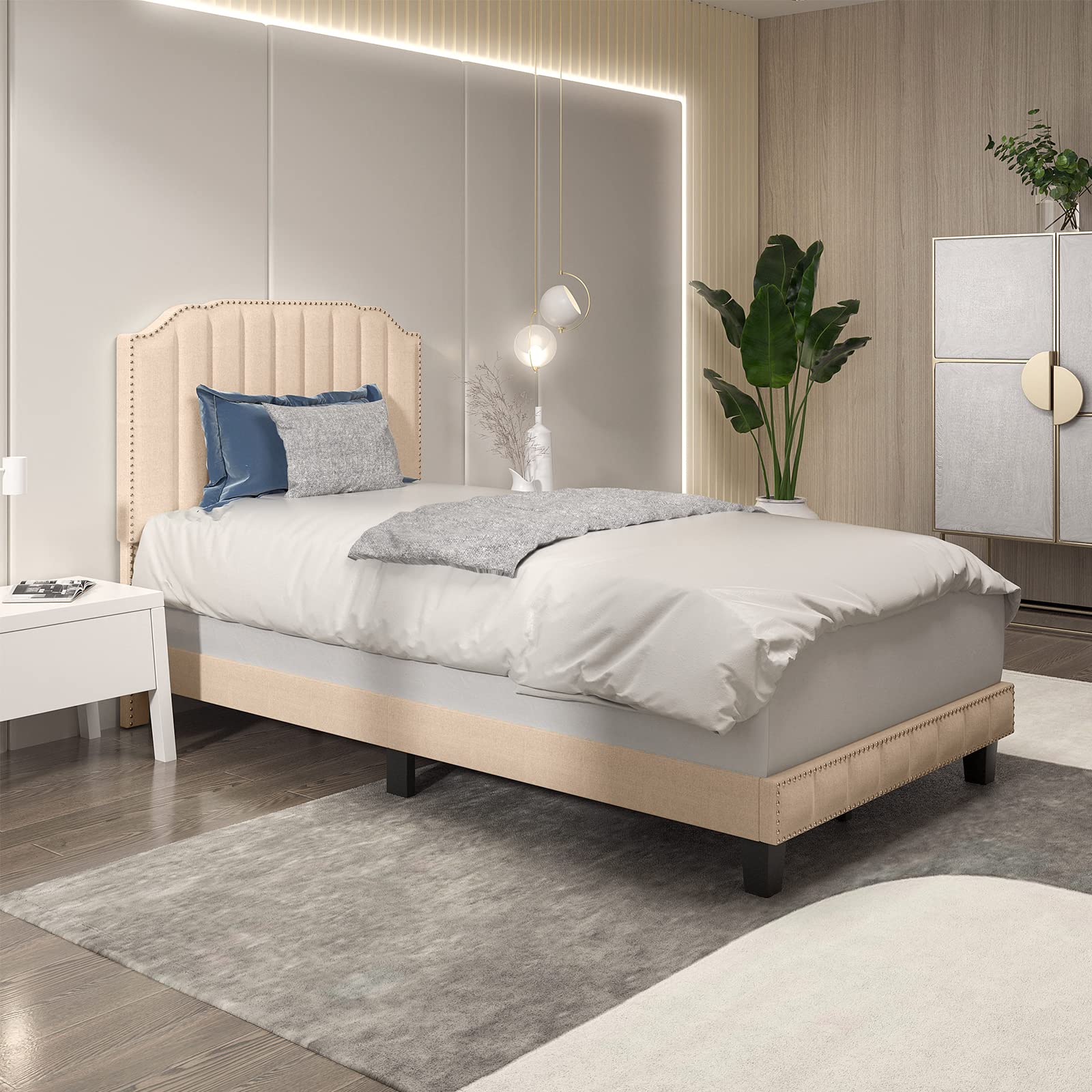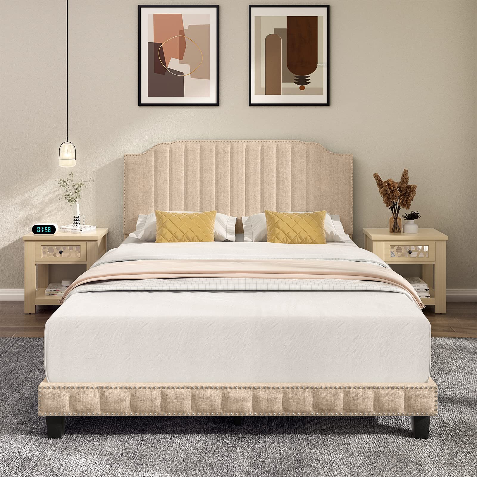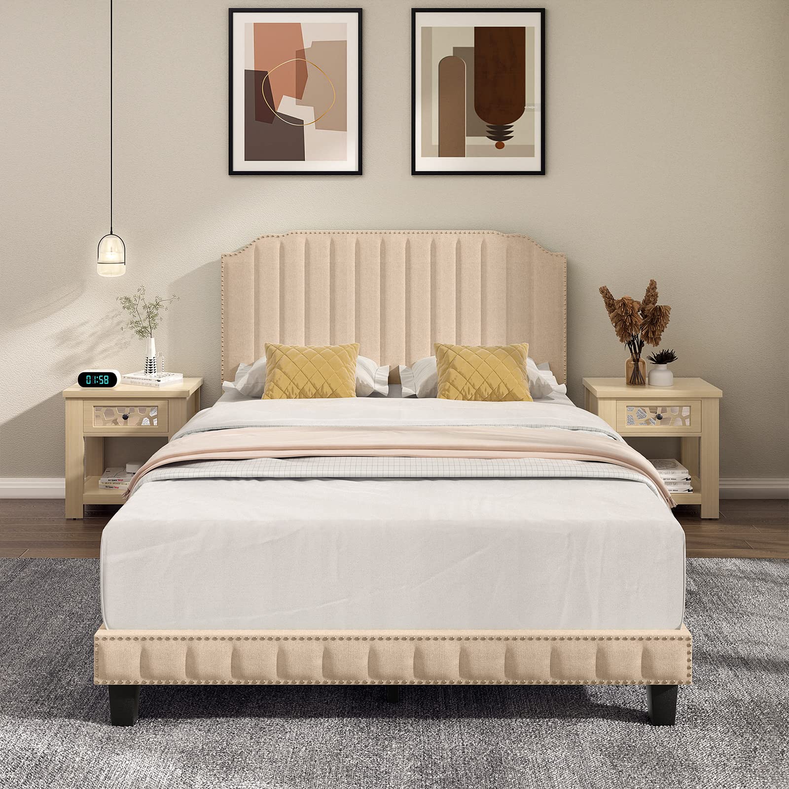 This platform bed frame offers a stylish and practical solution for your bedroom. With its upholstered headboard and footboard, it combines comfort and aesthetics. It supports a mattress directly, eliminating the need for a box – spring.