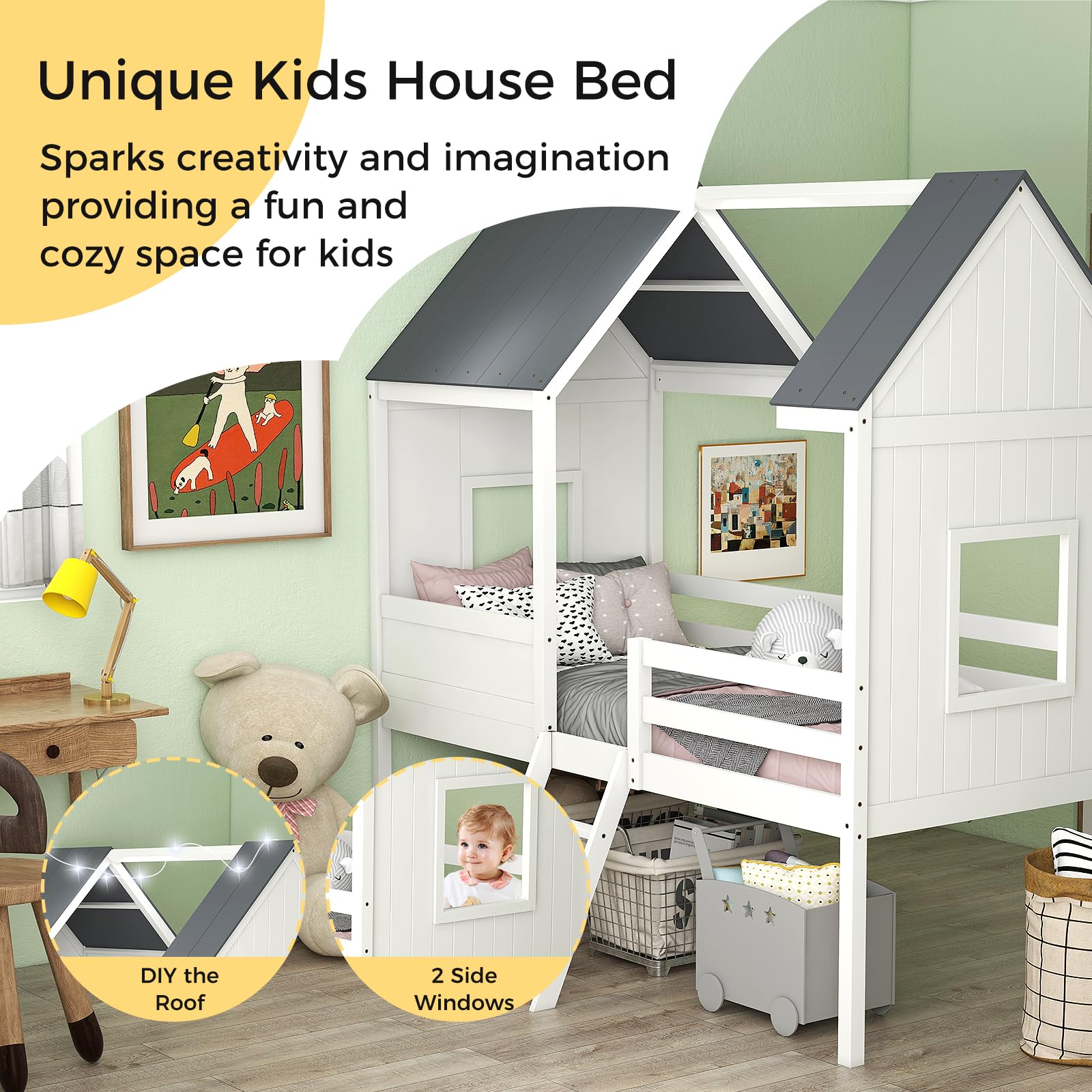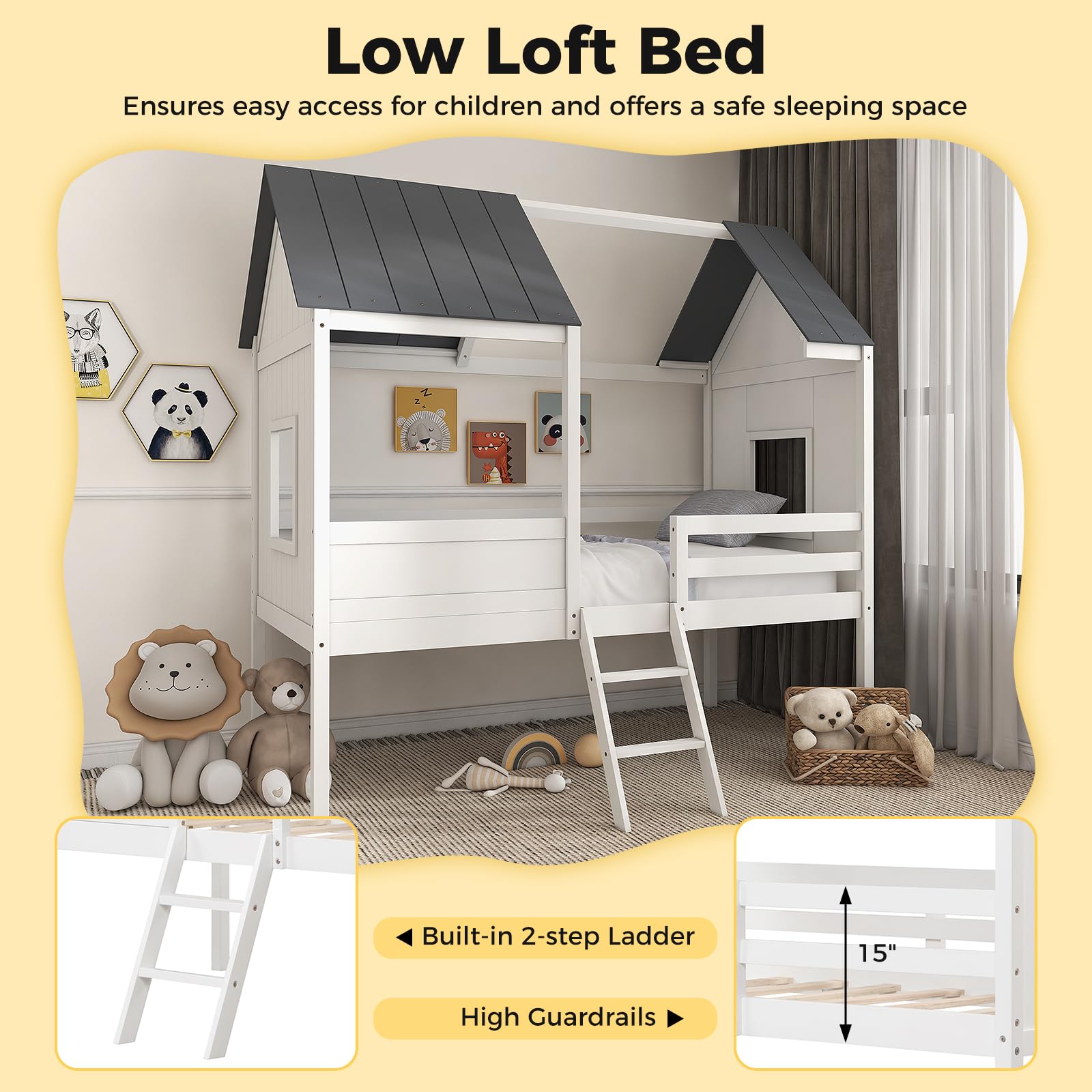 | Product Type | Kids’ house-themed low loft bed (twin-size house-shaped elevated bed) |