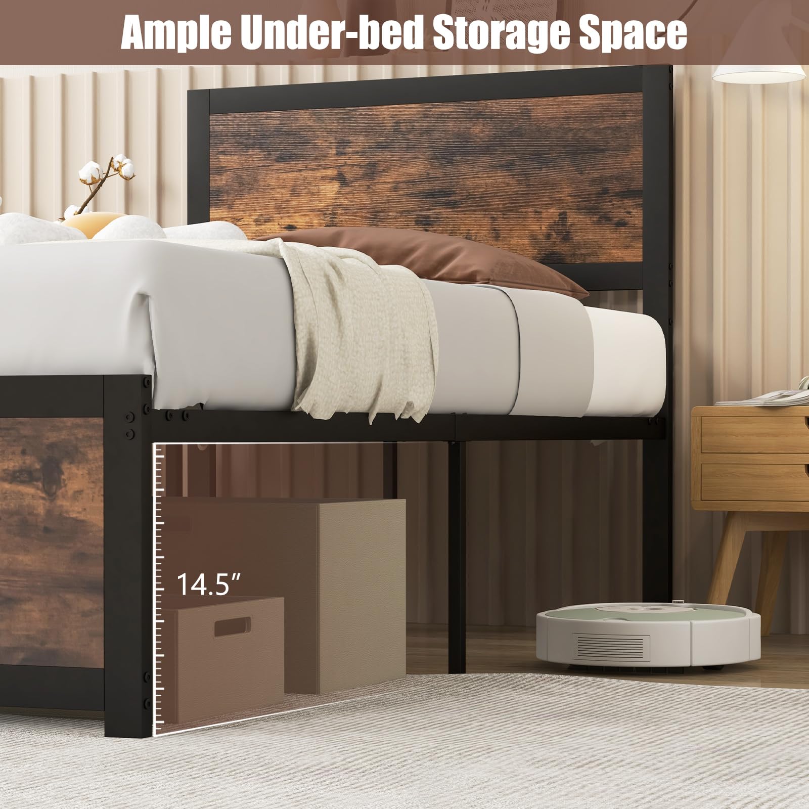 - 14.5” under-bed clearance for easy storage of boxes and items