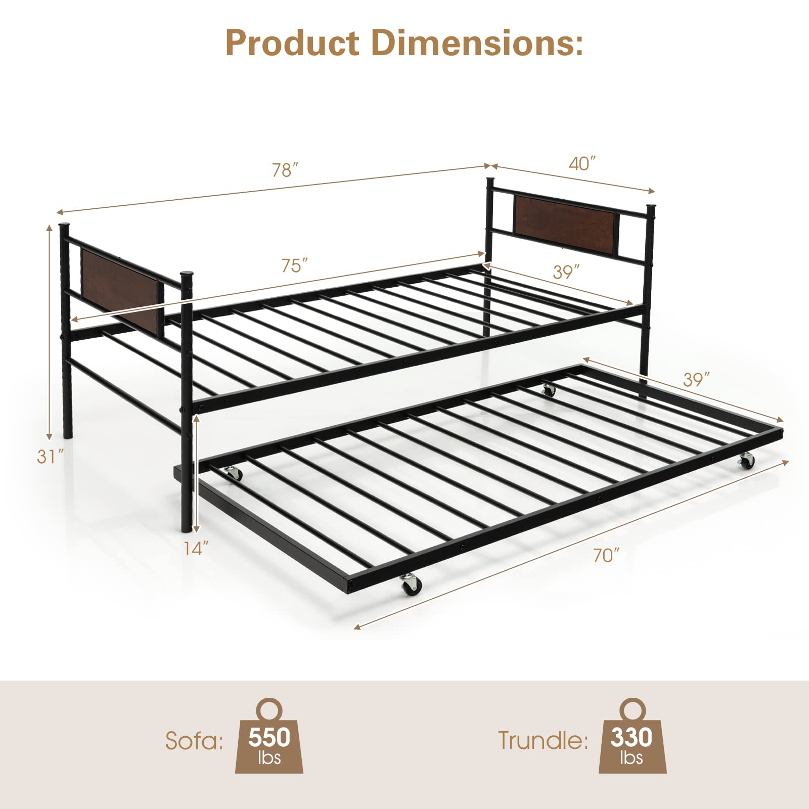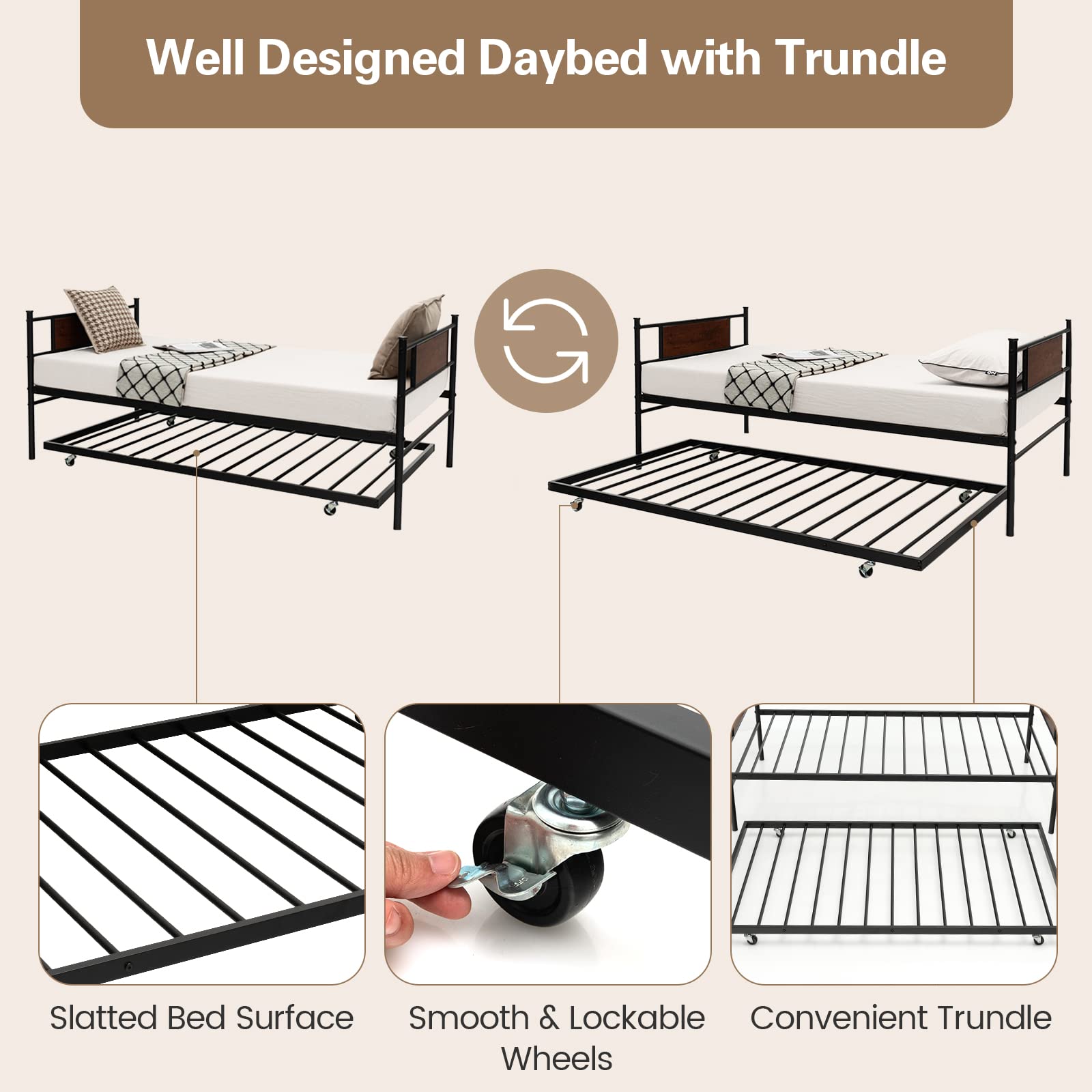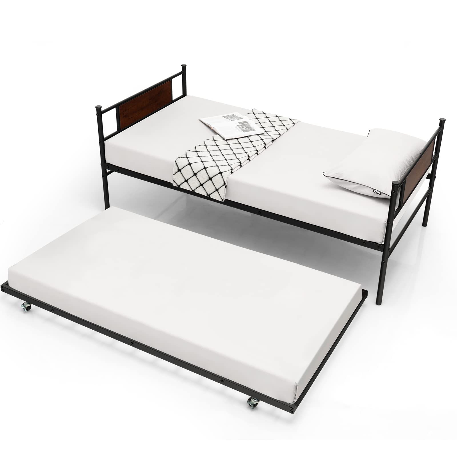 This twin – size bed frame comes with a trundle bed, offering an extra sleeping surface that can be pulled out when needed. It combines functionality and style, making it a great addition to various living spaces.