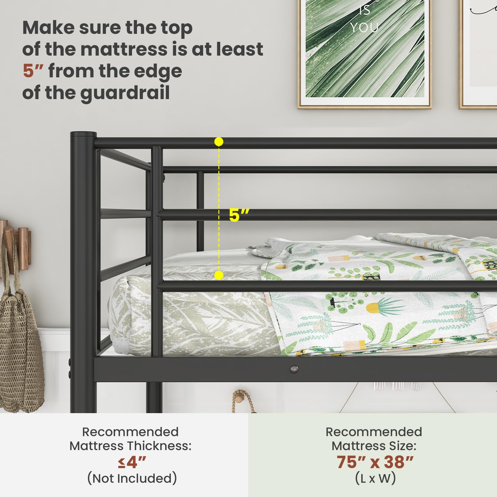 - Sturdy powder – coated metal slats that support mattresses without box springs