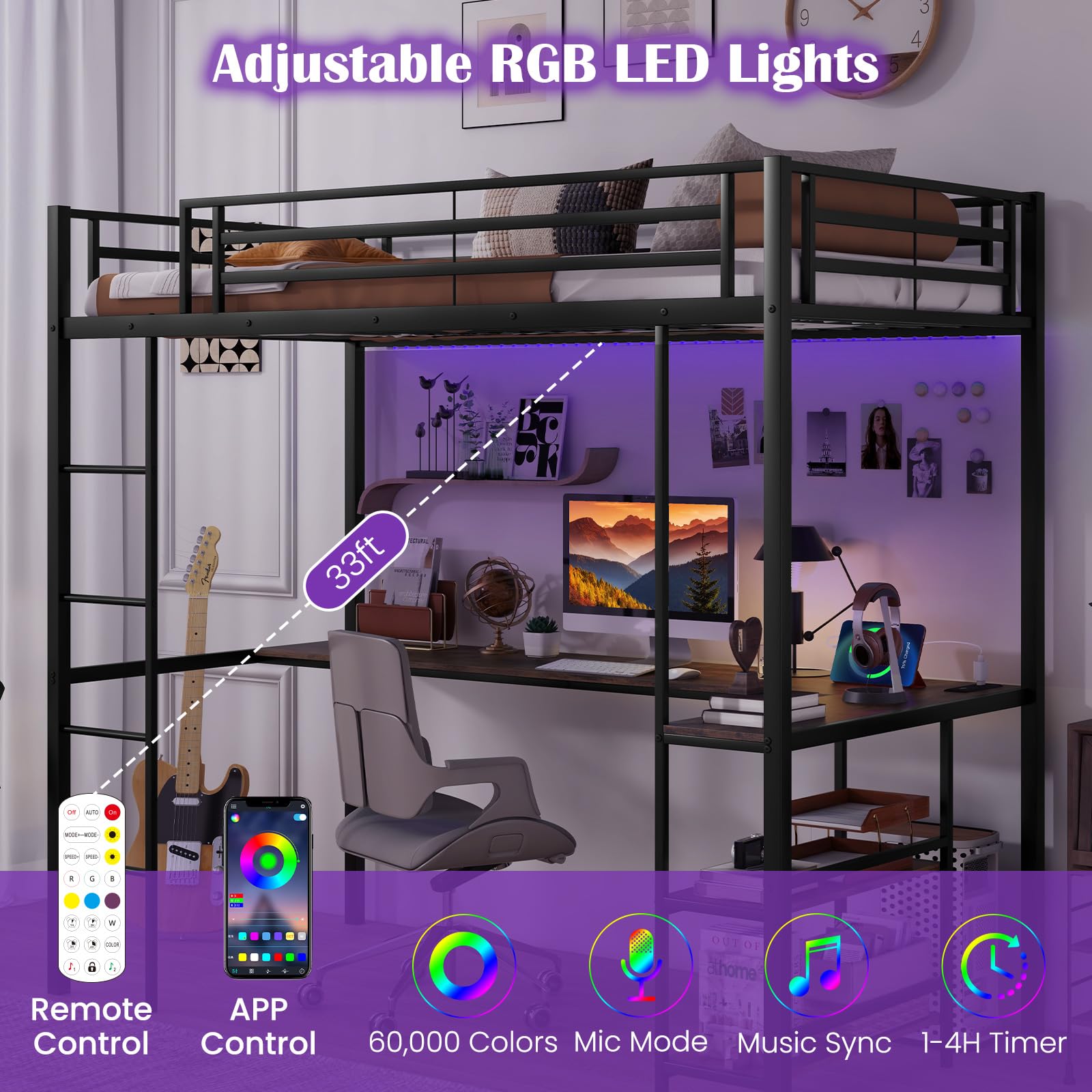 - Adjustable RGB LED lights with a 33ft strip, controllable via remote/app with various modes and a timer.