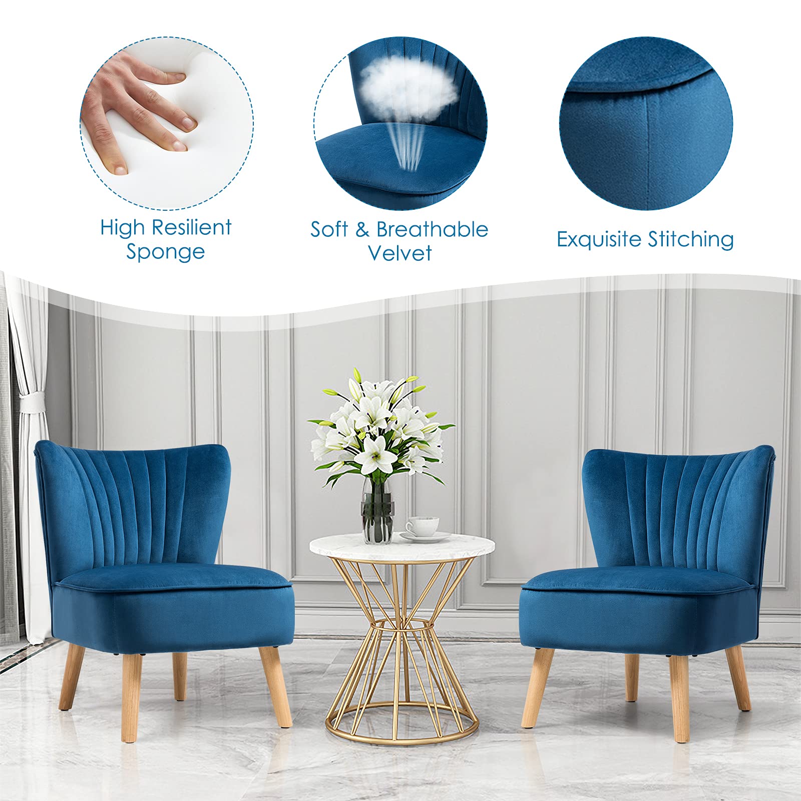 - Velvet upholstery that is soft, breathable, and stain – resistant