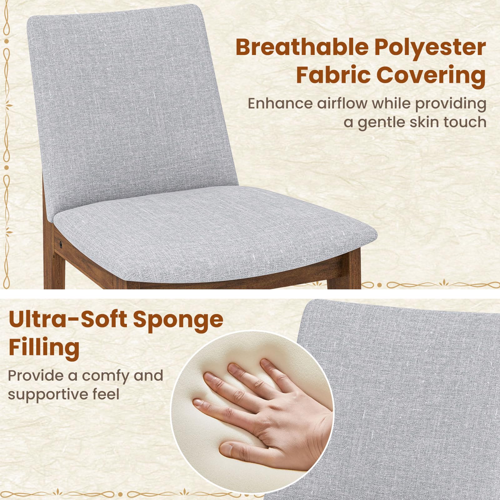 This dining chair set is a perfect addition to any dining space. It combines comfort and style, with an ergonomic design and a modern farmhouse aesthetic. The set is suitable for both home and commercial use.