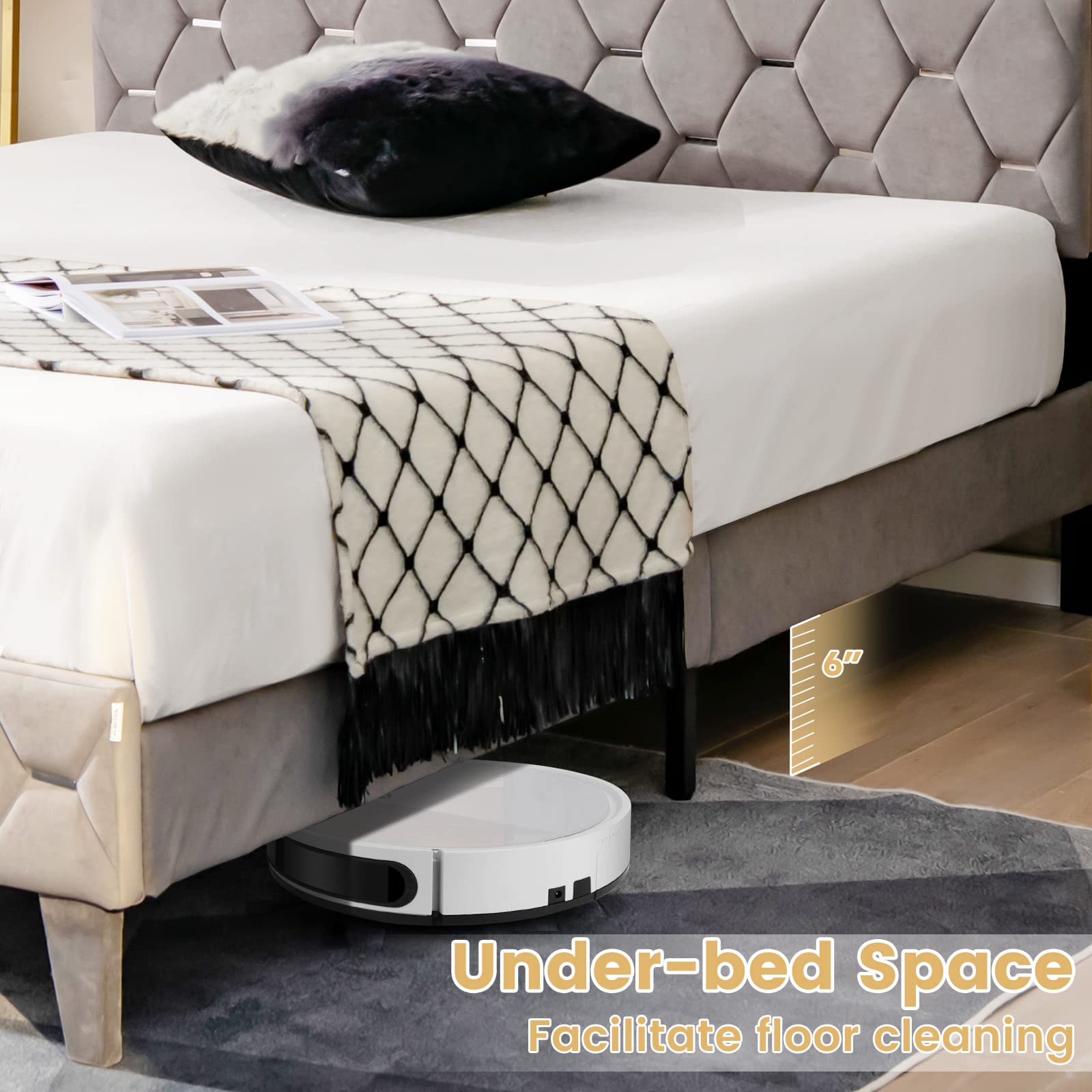 - More Details for Better Experience: Noise reduction foam on the center support bar, 6″ tall under – bed space for easy cleaning.