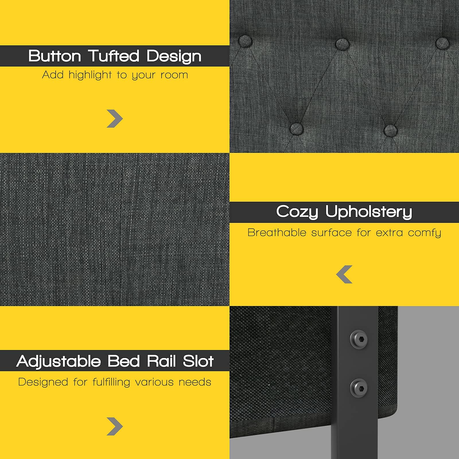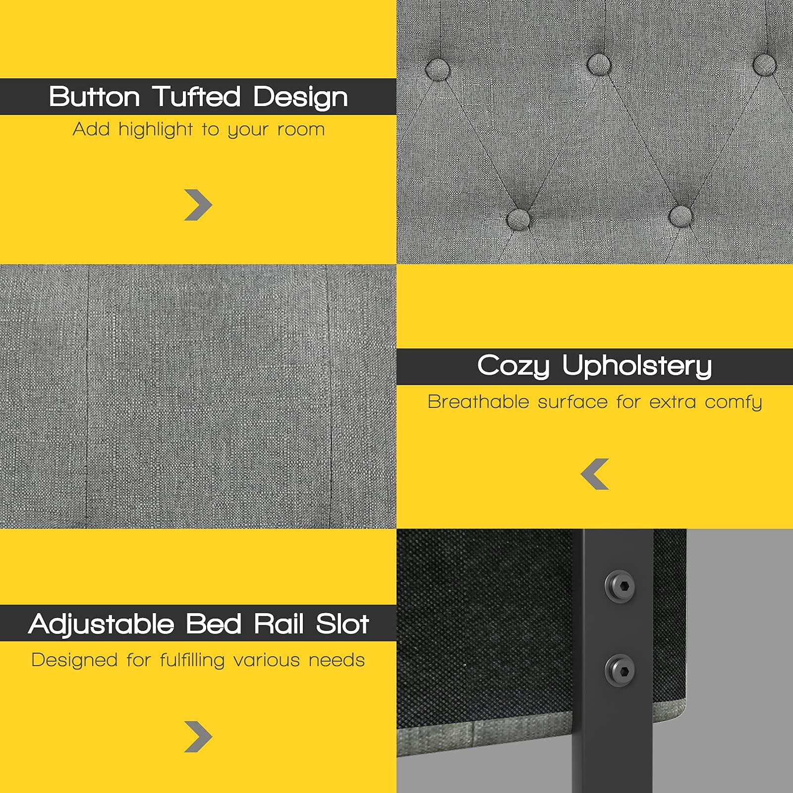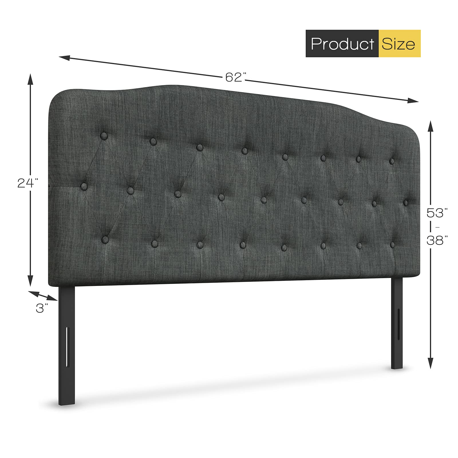- Adjustable headboard height with two levels (38″–53″)