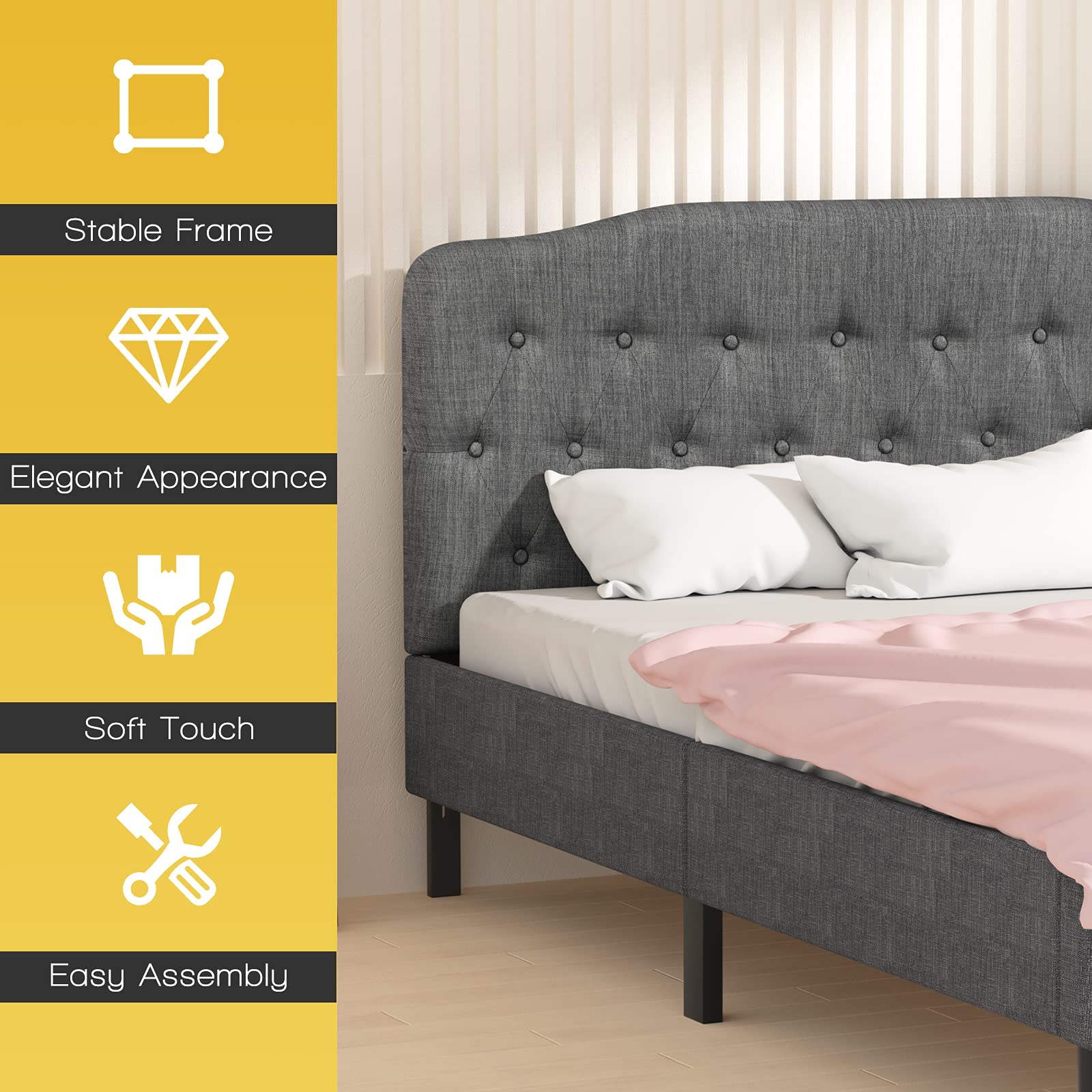 - Sponge padding in the headboard for comfort