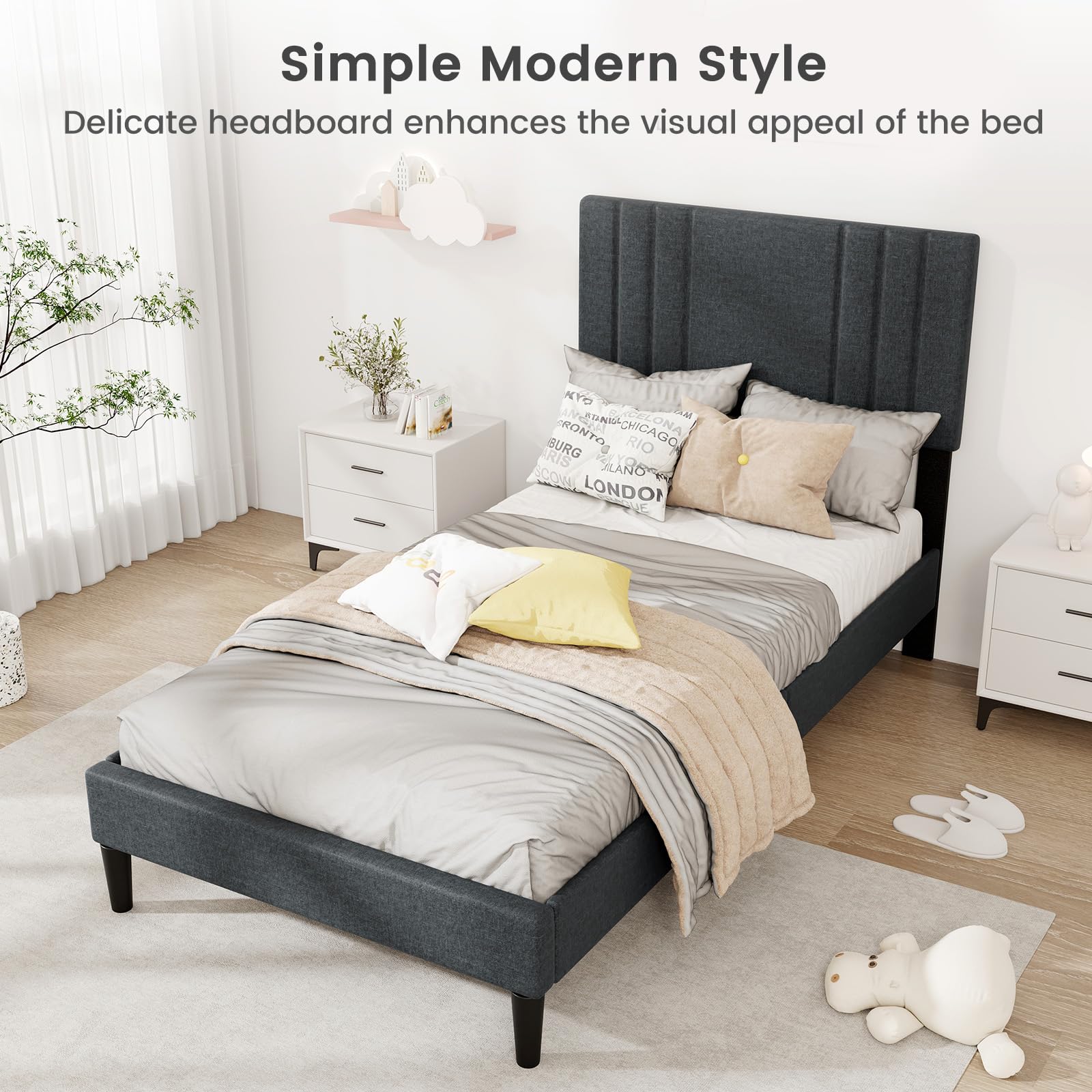 This bed frame is perfect for kids’ rooms, guest beds, or small adult bedrooms. It suits both playful and minimalist room aesthetics.
