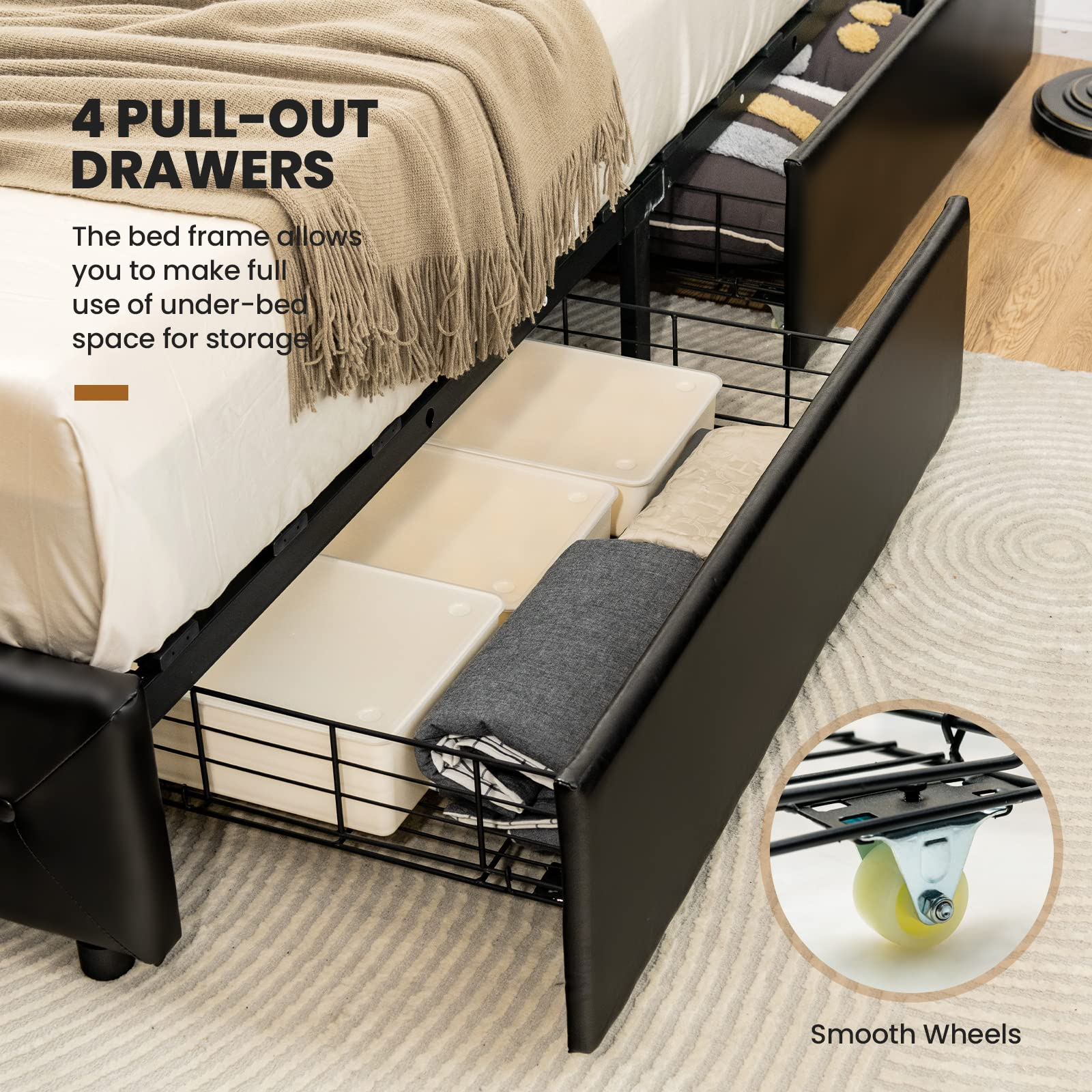 - Under-Bed Storage Drawers: The bed frame provides 4 spacious storage drawers with stable wheels for smooth movement, perfect for storing bed sheets, off – season clothes, and towels.