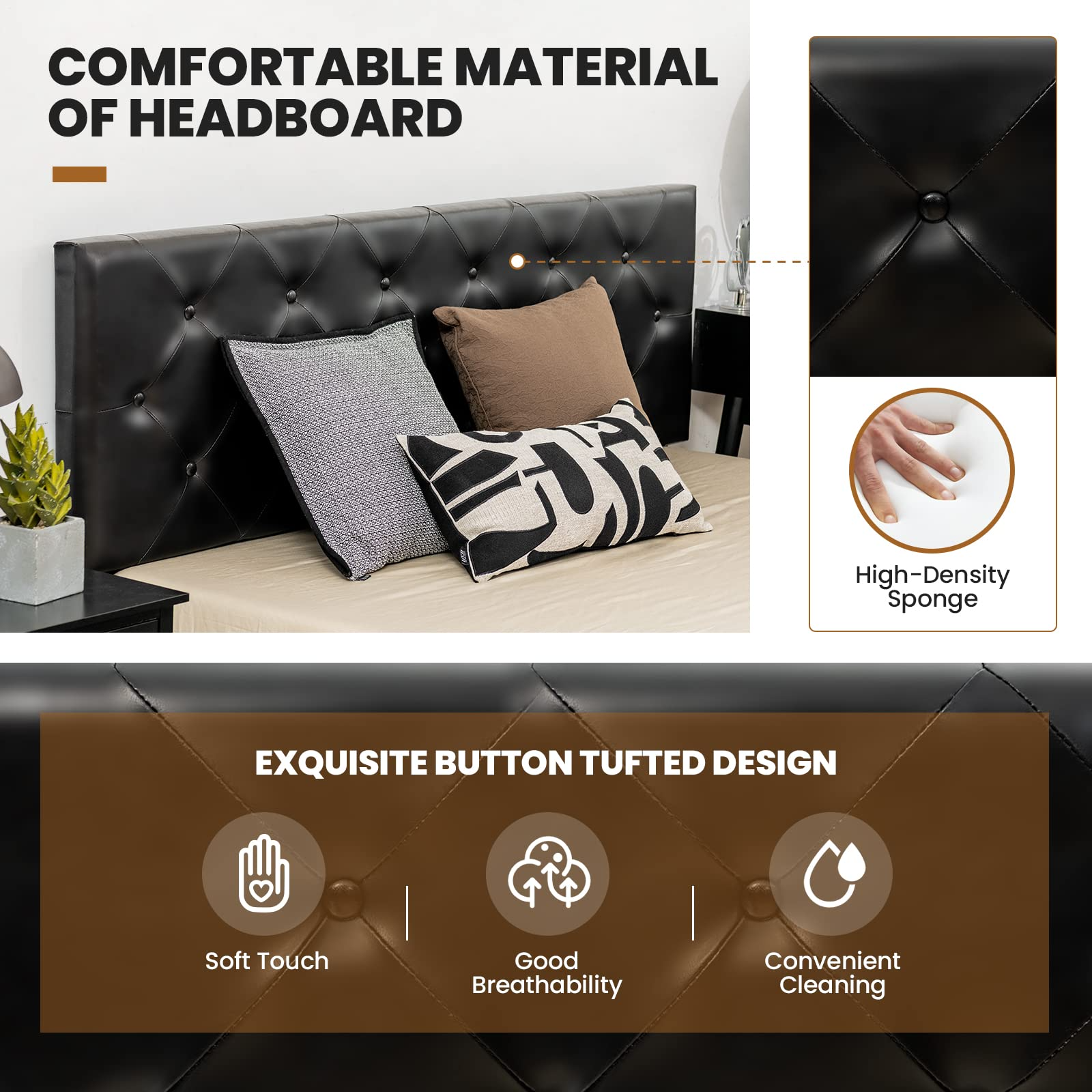 - Delicate Button Tufted Design: The button – decorated and square – stitched headboard gives a modern and lavish look. The headboard and side rails are upholstered in faux leather, adding a sense of softness.