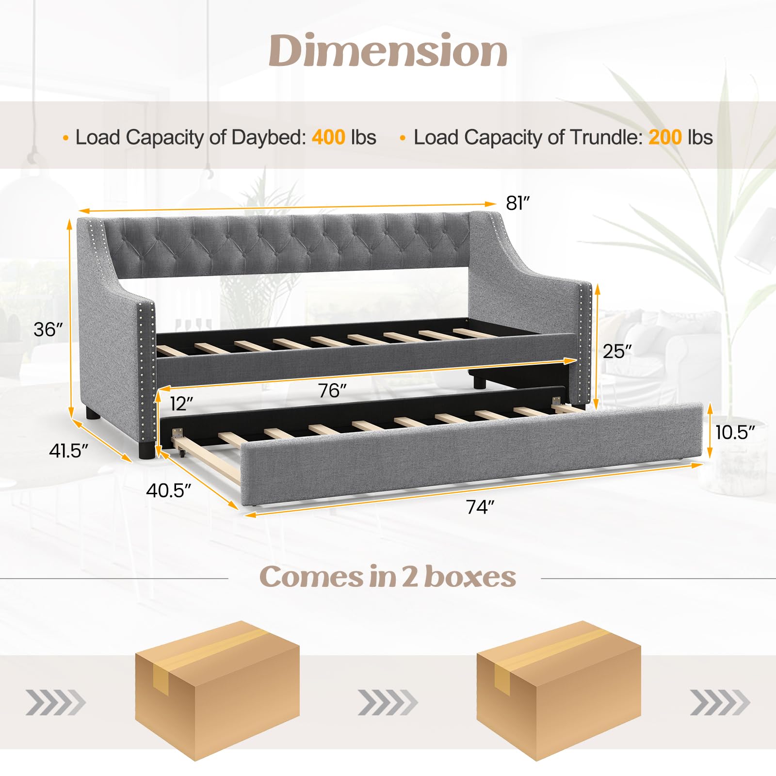 | Daybed Length | 81 inches (arm – to – arm) |
