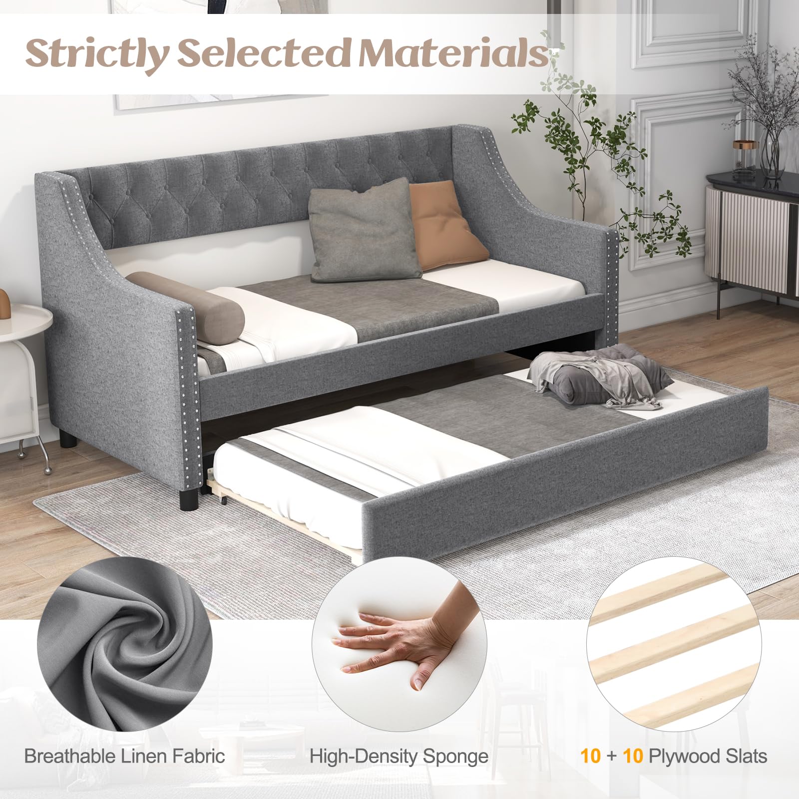 - Tufted headboard and armrests with breathable linen fabric for a plush and stylish look
