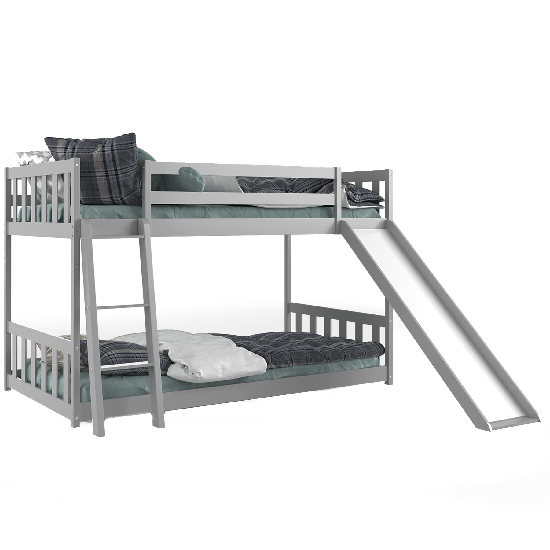 - Vertical slats on all sides of both bunks for fall prevention