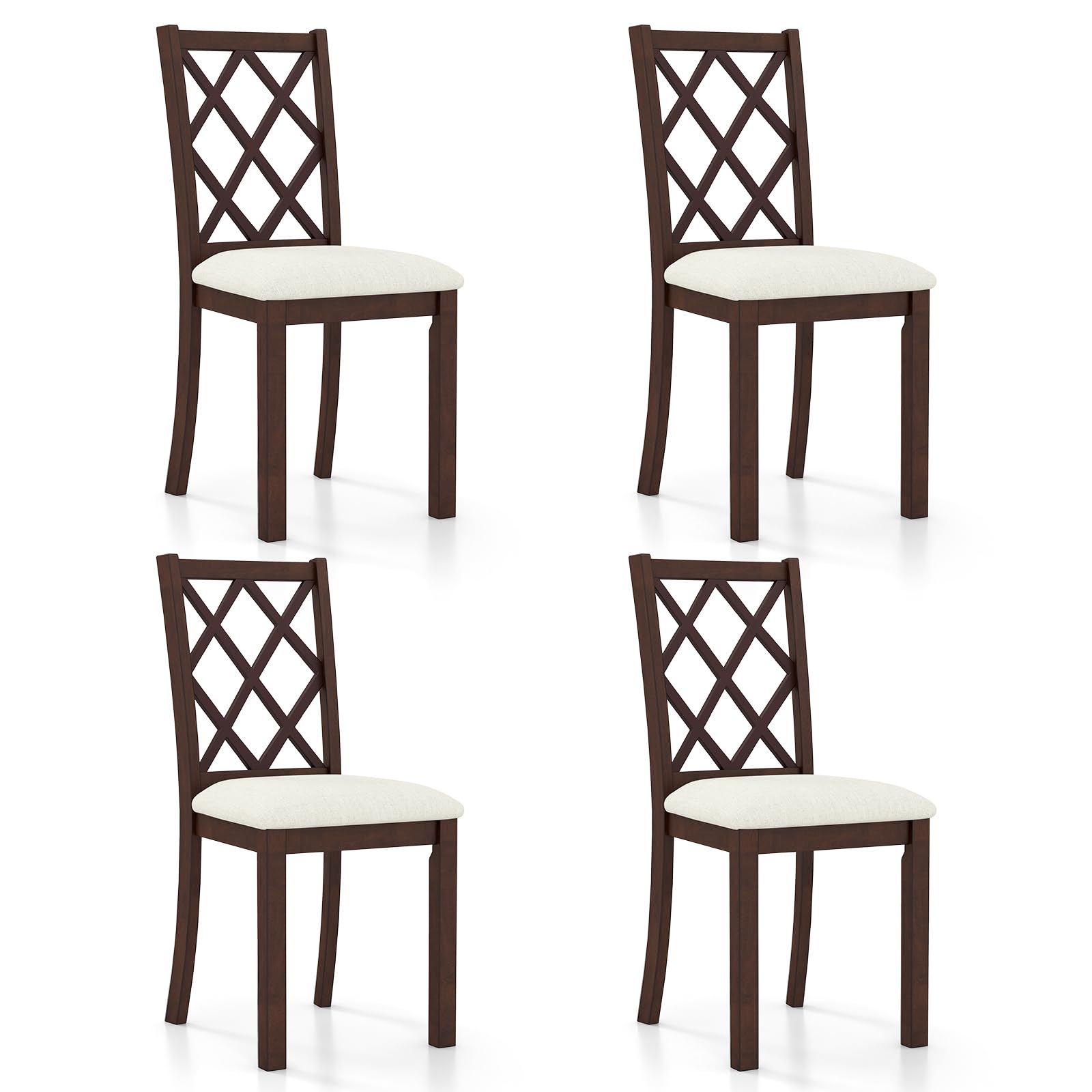 This set of dining chairs is a perfect addition to any dining area. With a lattice-style backrest and an upholstered seat, they offer both style and comfort. The combination of rubber wood and light-colored fabric creates an elegant look.