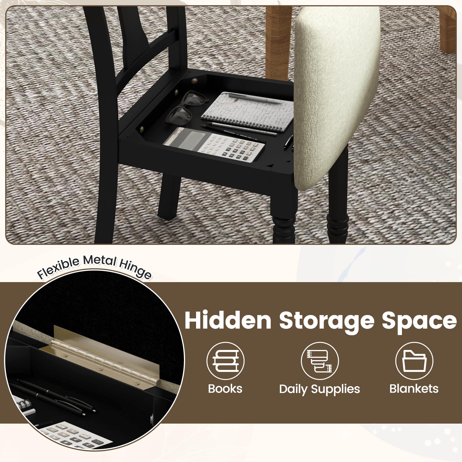 - [Creative Flip – up Design]: The flip – up seat creates a storage space beneath, equipped with a flexible hinge for easy opening and closing.
