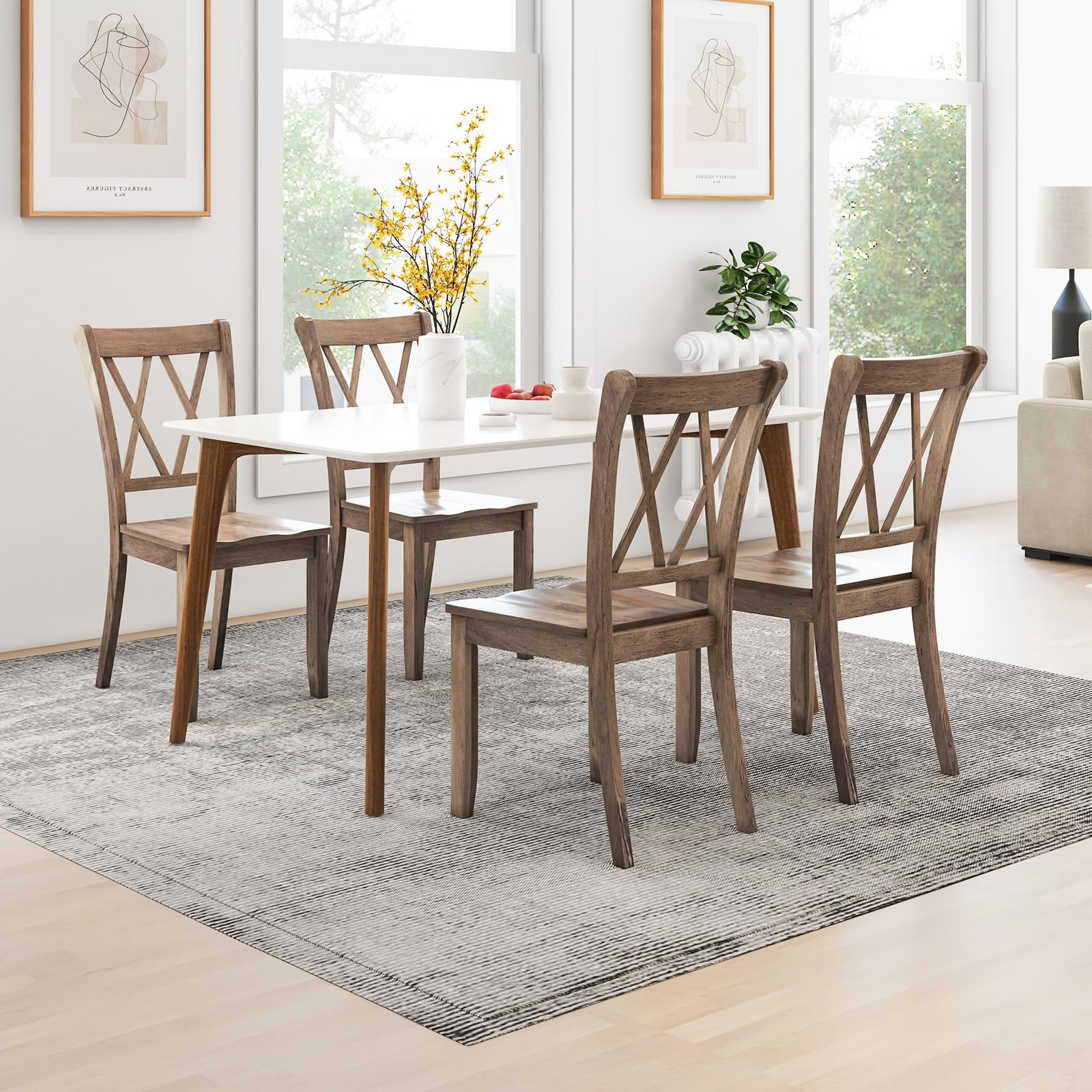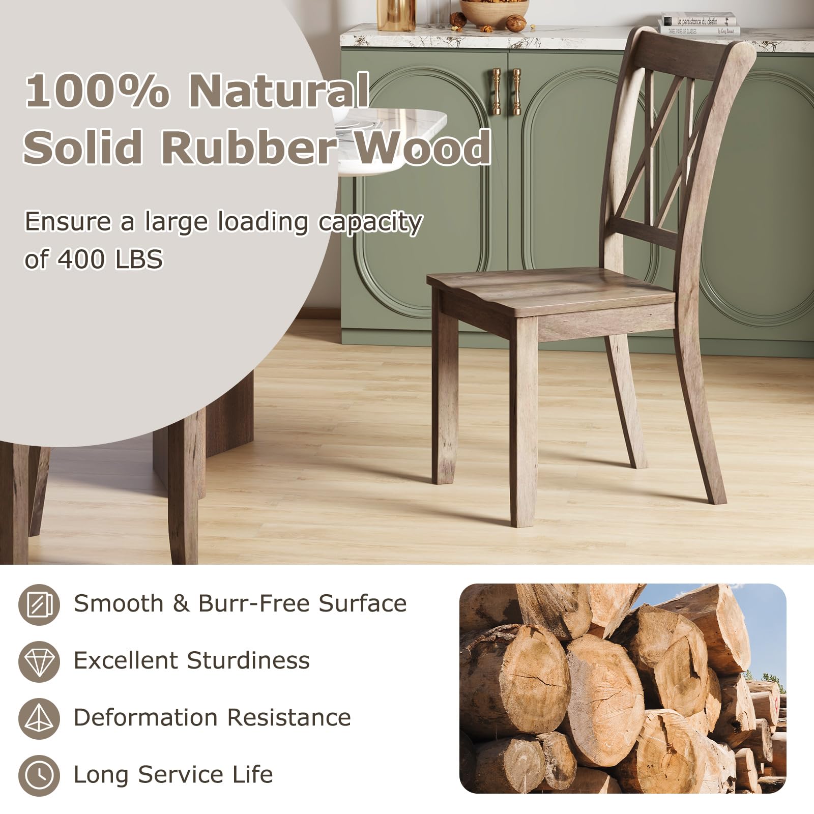- Sturdy & Durable Construction: Made of solid rubber wood, wear – resistant and durable. The triangular structure at the bottom reinforces stability, with each chair having a 400 – lb load – bearing capacity without wobbling.
