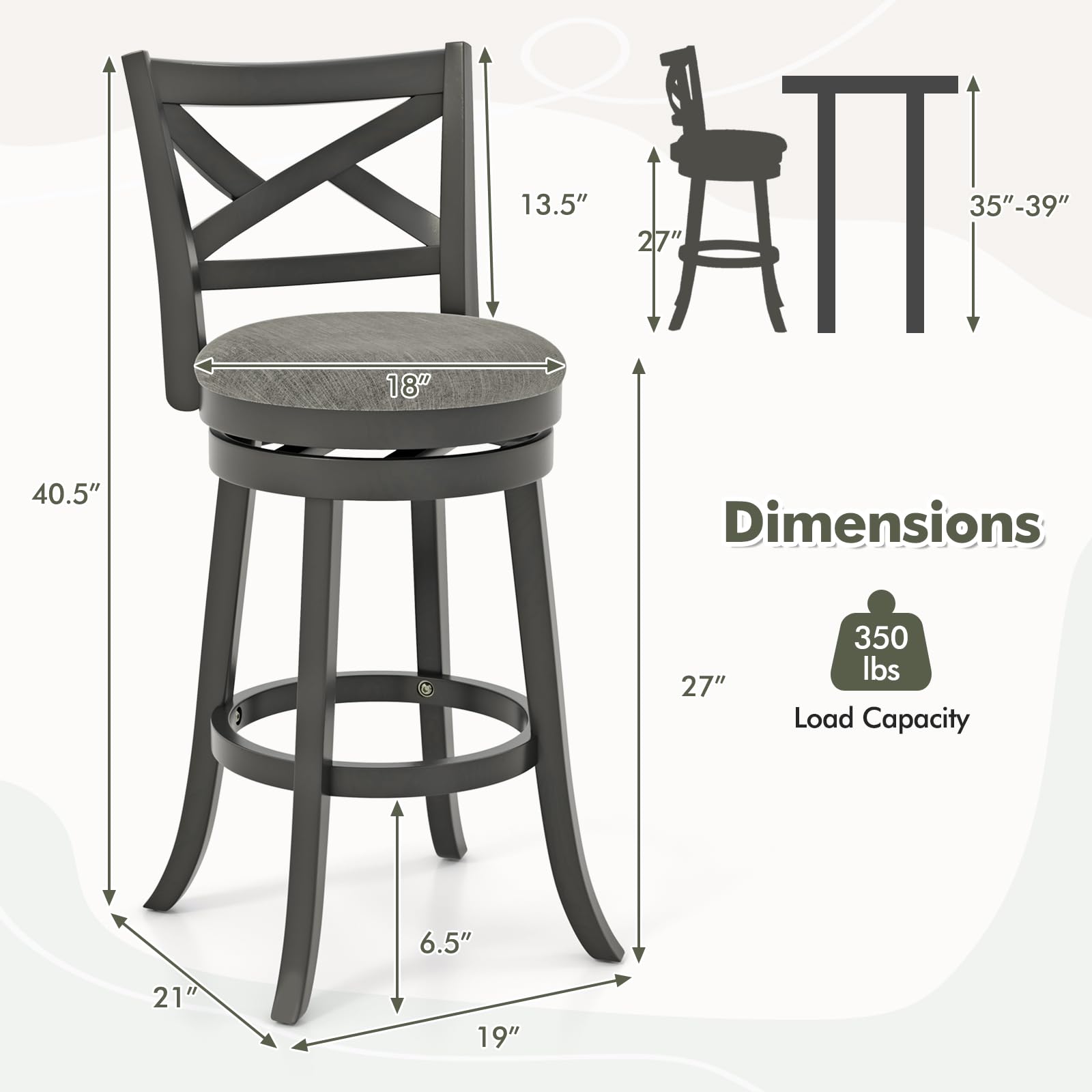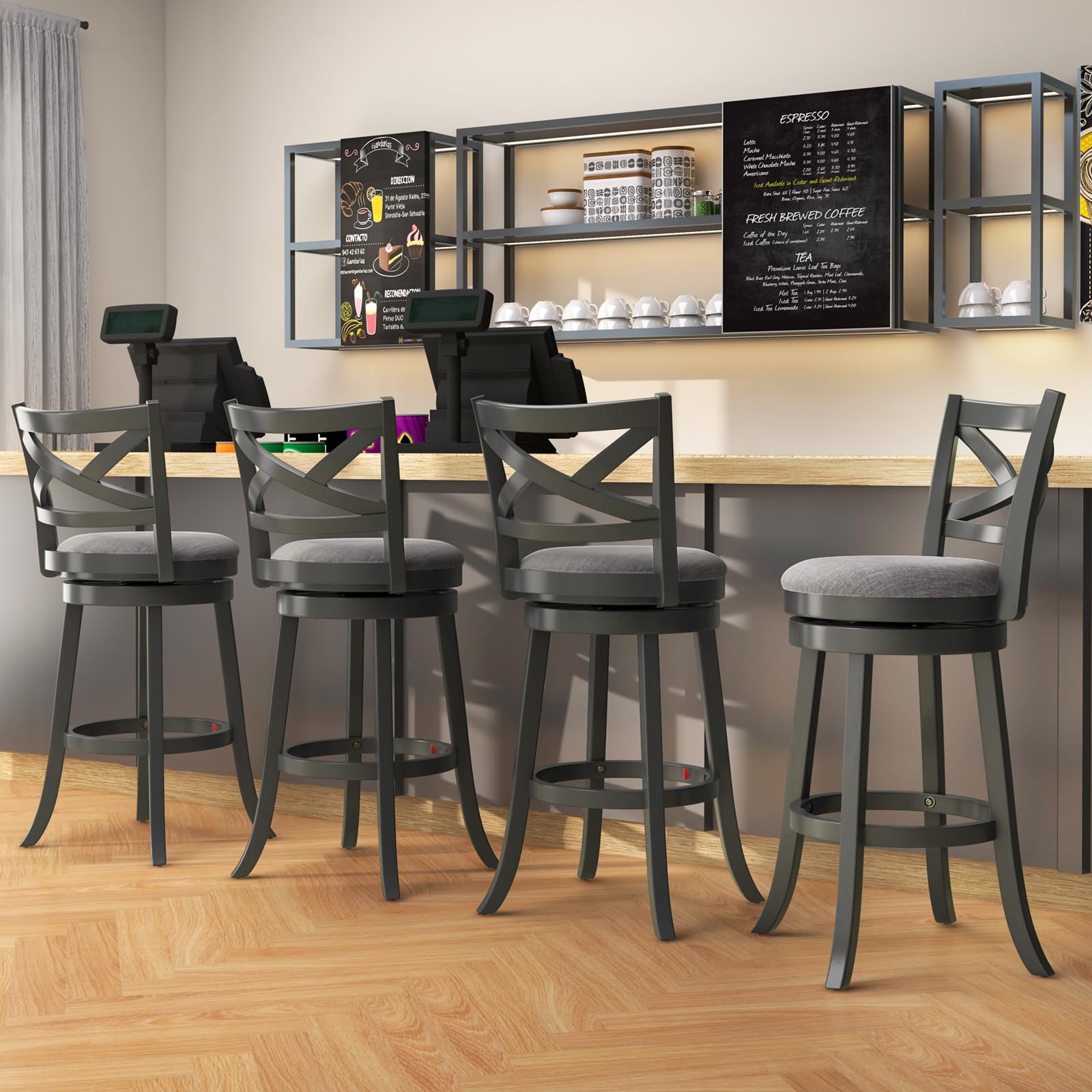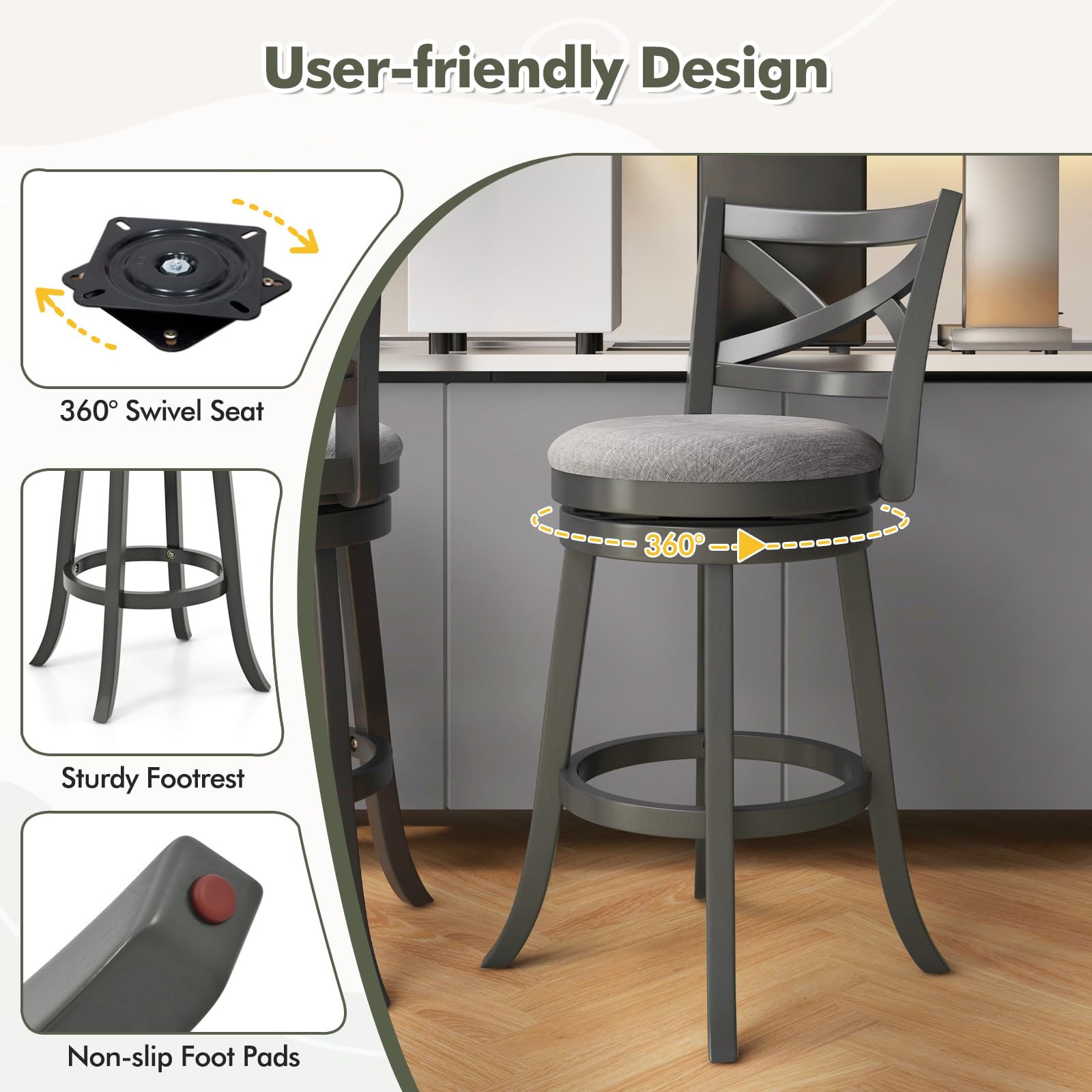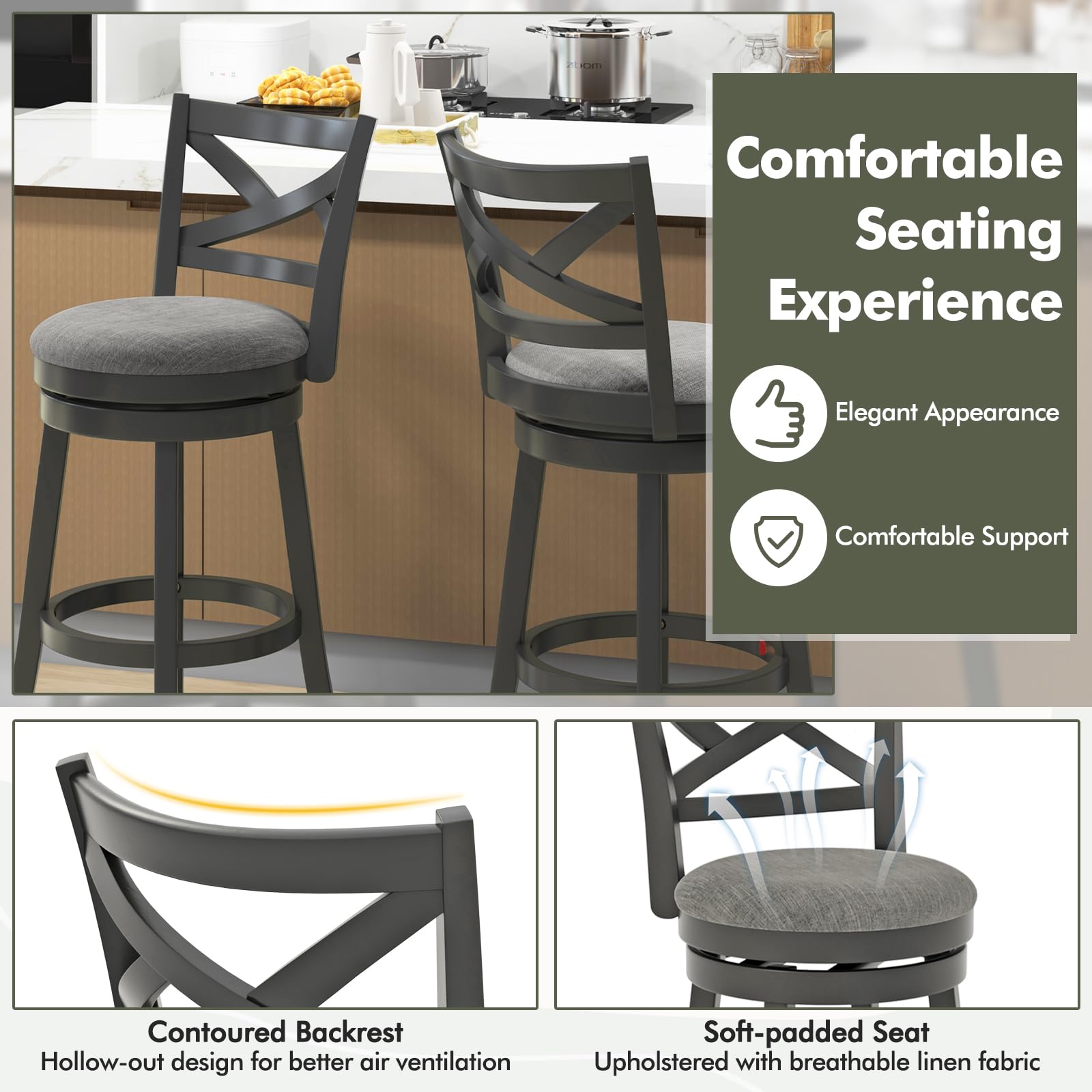 These swivel bar stools are a perfect addition for your counter or bar table. They come with a padded seat and contoured backrest for comfort, and a circular footrest for added support. With a modern and minimalist design, they’ll fit well in various home settings.