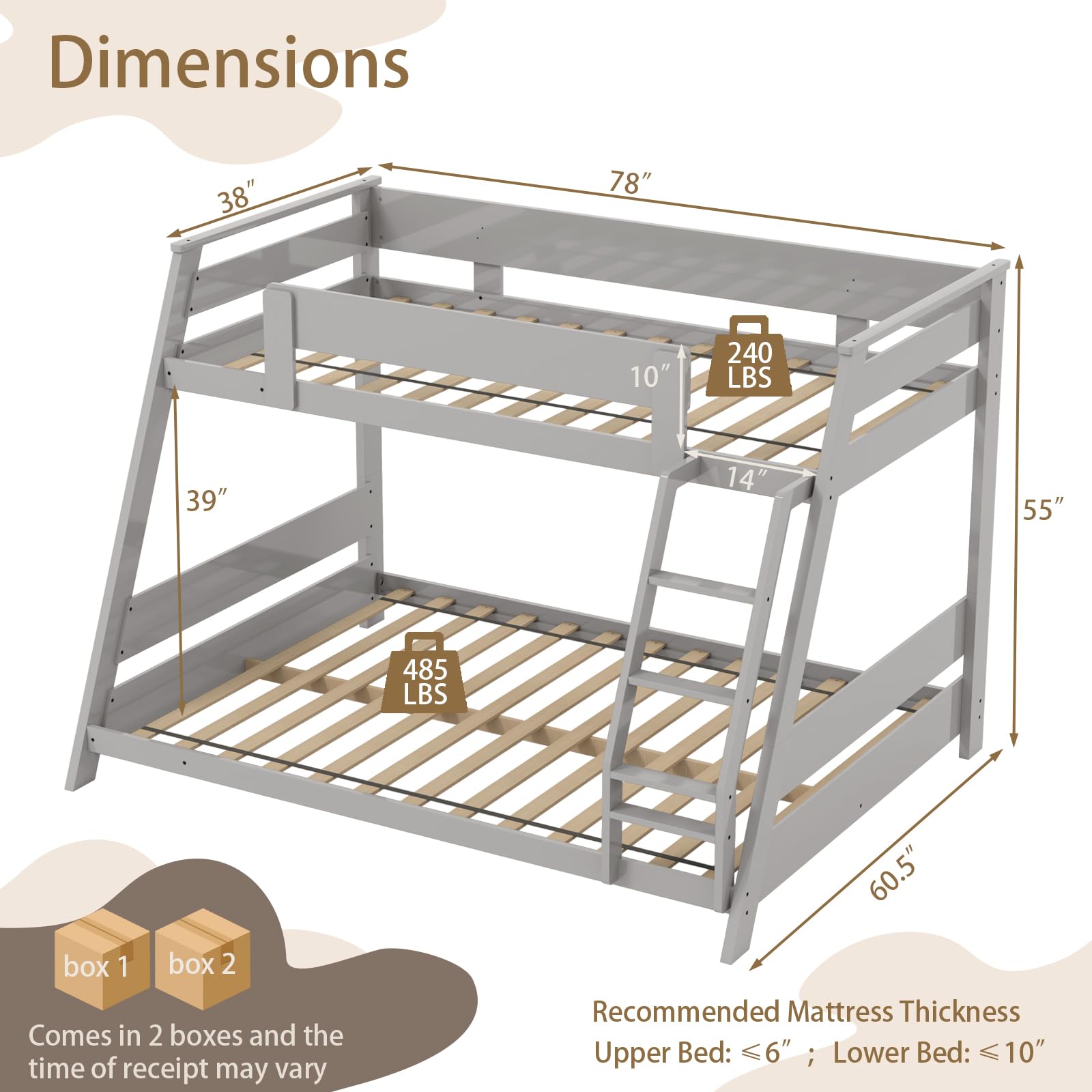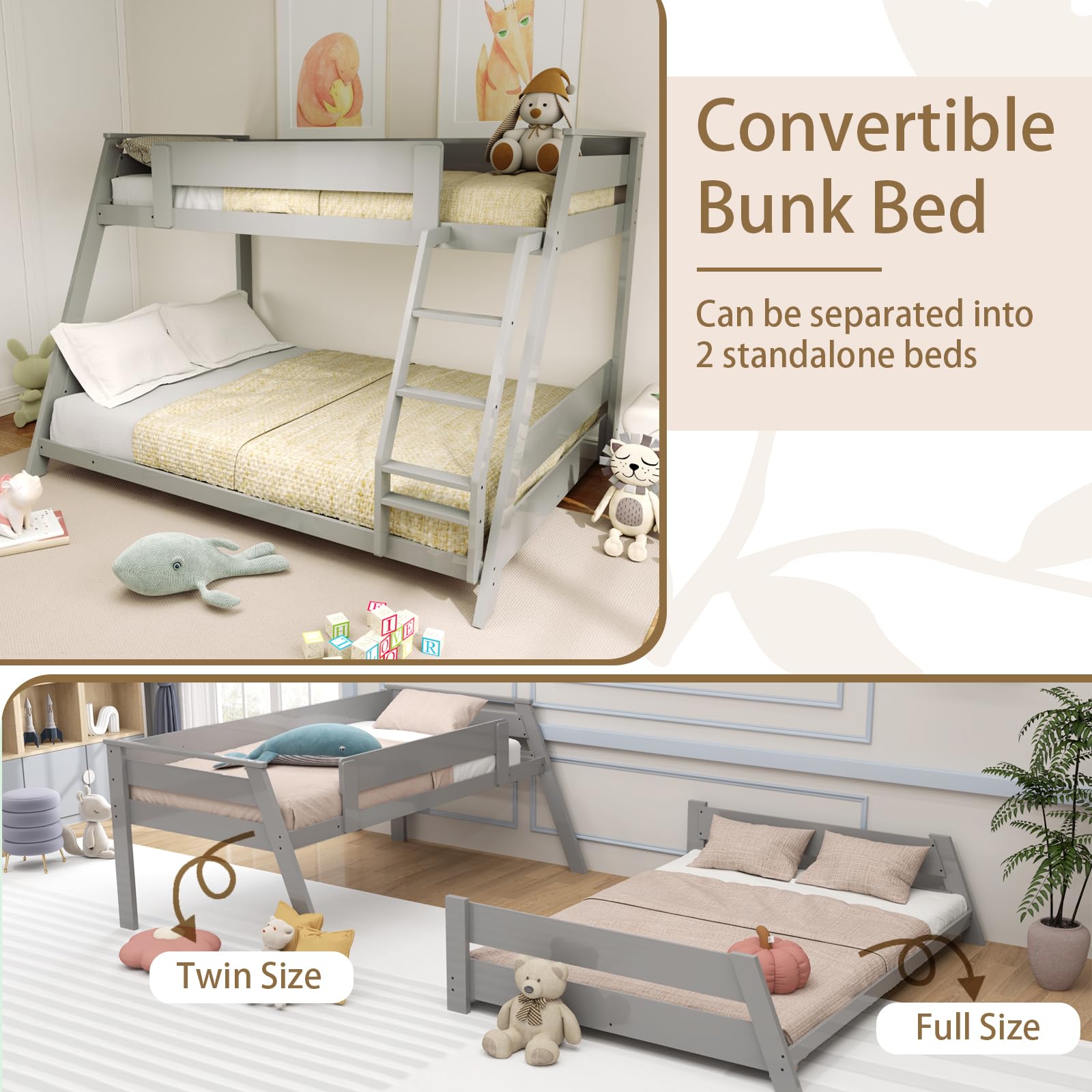 - Low – to – ground bottom bunk and integrated ladder for easy entry/exit