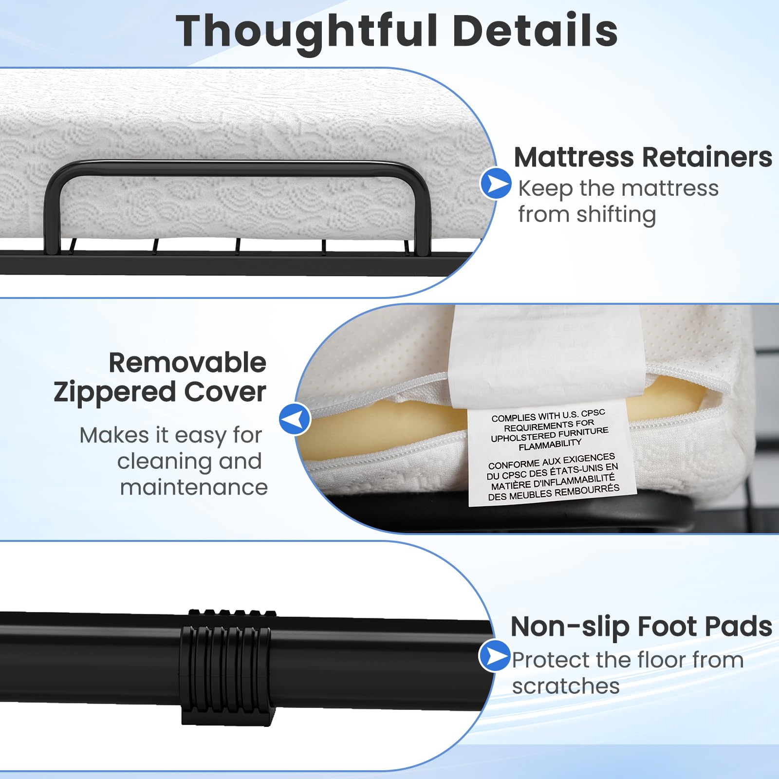 - 13 plywood slats per tier for strong, box – spring – free support