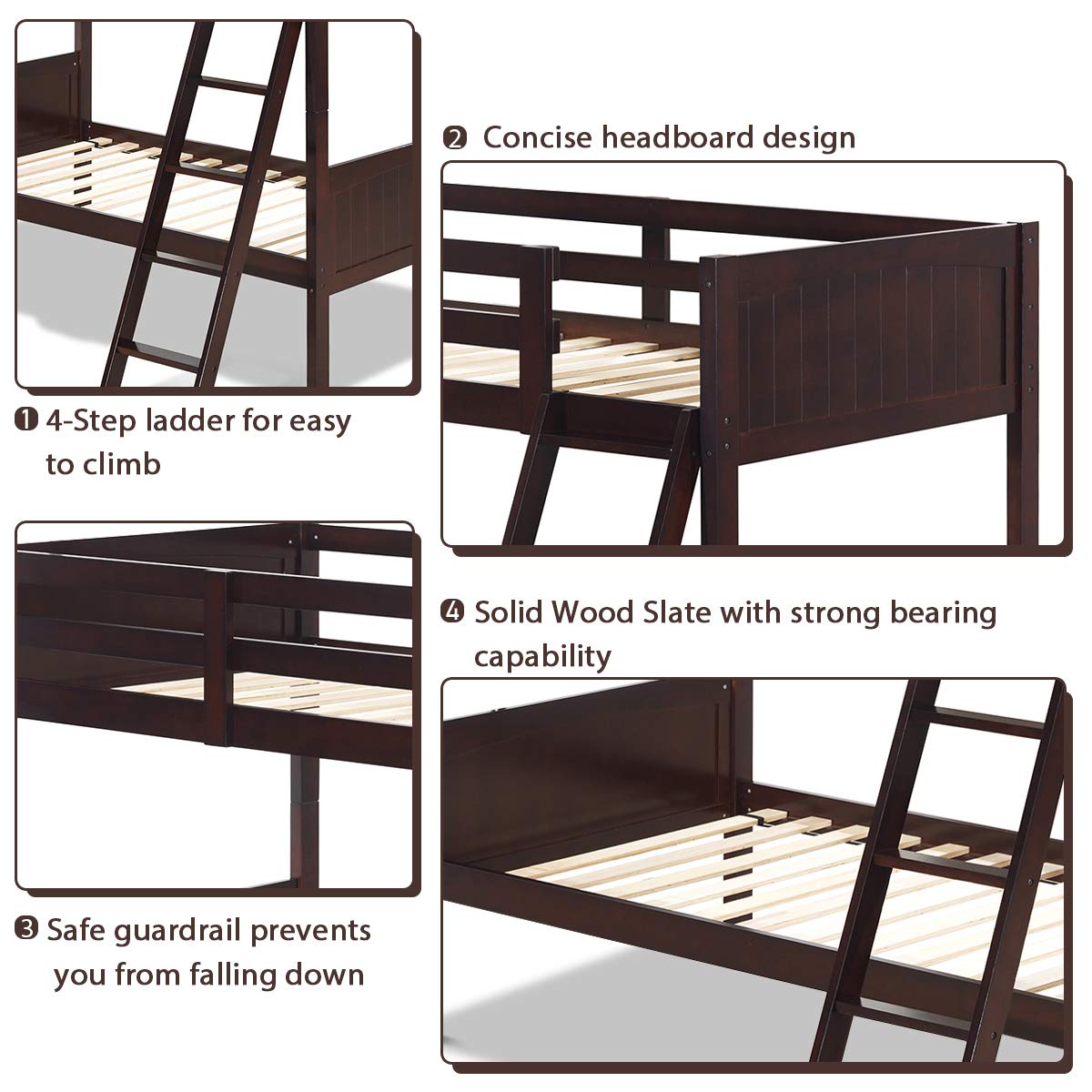 - Solid wooden slats on both bunks for mattress stability without the need for a box spring.